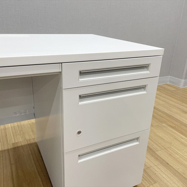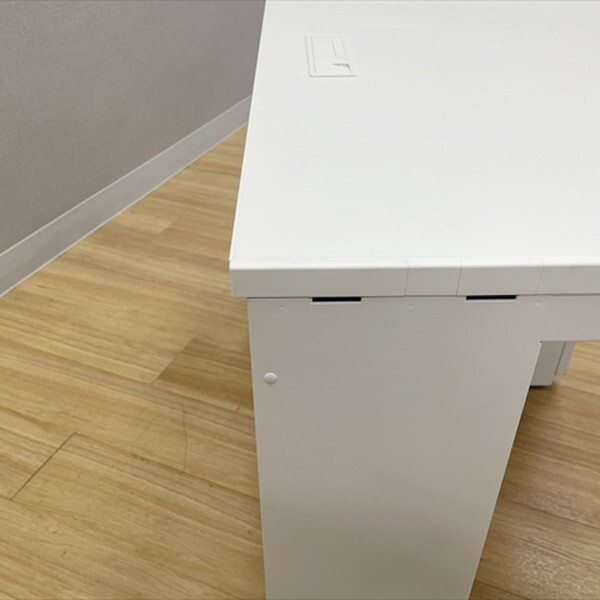 ■取り扱い番号 DK-877716B ■仕様 メーカー : 内田洋行 ウチダ 製品名 : SCAENA 色素材 : ピュアホワイト 外寸 : 幅1000mm 奥行き600mm 高さ700mm ランク : Bランク ■特徴 配線口:1ヶ所 本体:オフホワイト フラットな面で構成されたデザインはどんなレイアウトでも美しく、すっきりとした空間を演出します。大小2つに分割されたコードホールカバーは、シンプルながら使いやすくなっています。 |