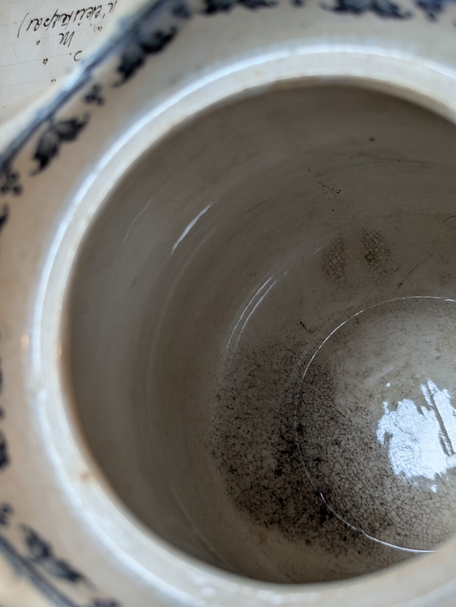 蓋の摘まみ部分修復した跡がございますので画像にてご確認下さい。ほか、全体にに貫入が染みになっていたり経年による汚れや傷、ペイントのスレとうございます。