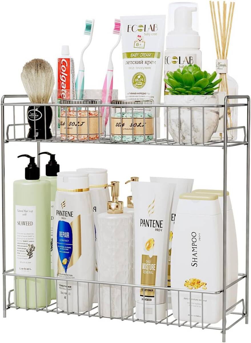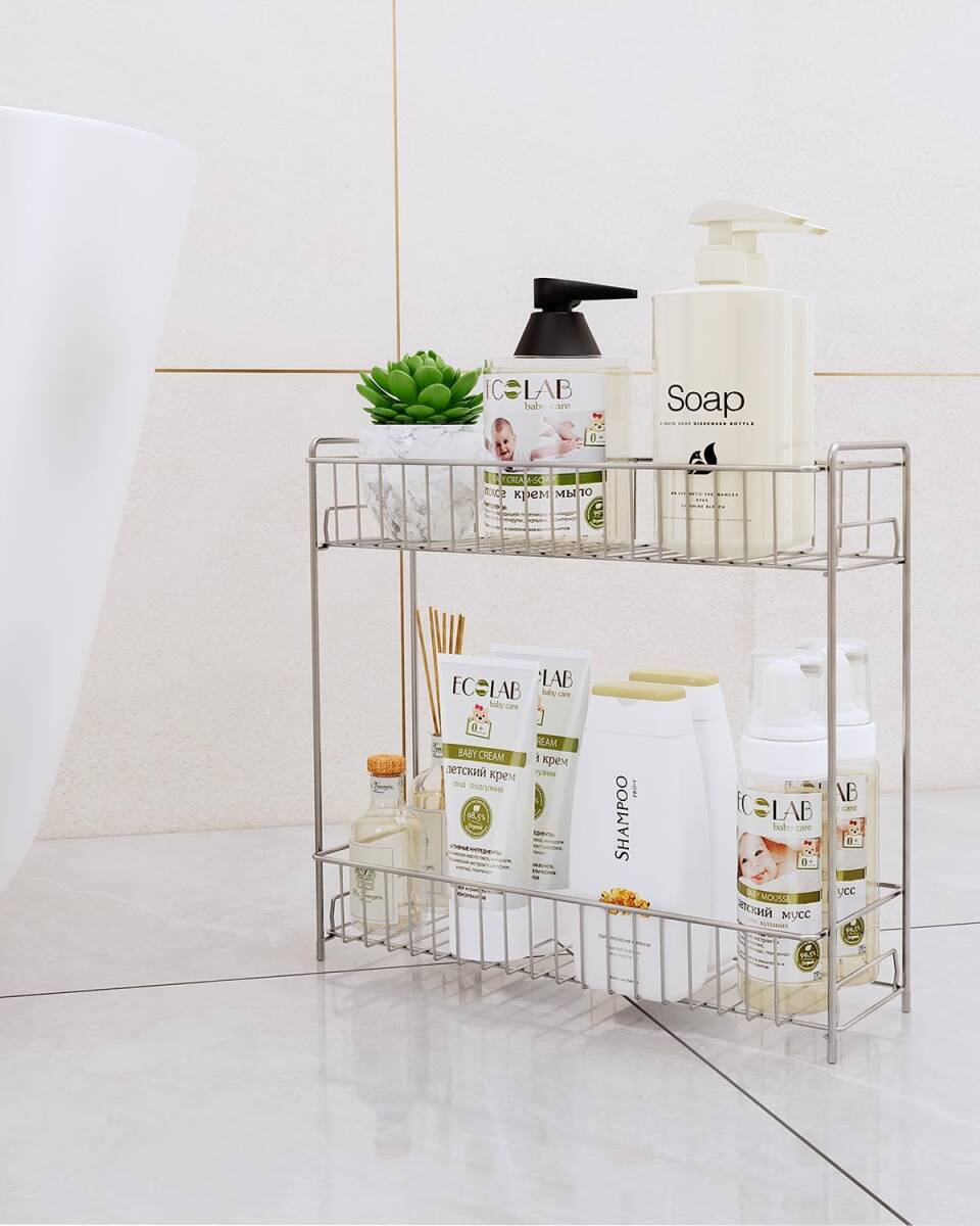 YQh 2段式 バスルームラック ステンレス製 シャンプー収納棚 浴室用シェルフ