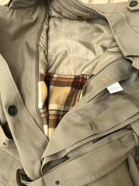メンズ 日本製 ライナー付き 比翼ボタン ステンカラーコート ベルト付き 100-6 カーキ です。