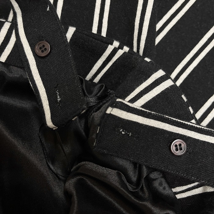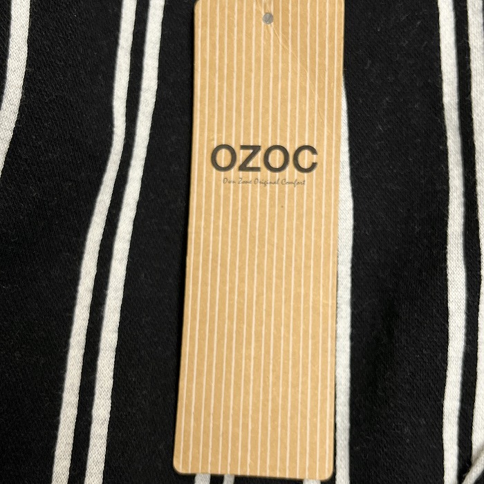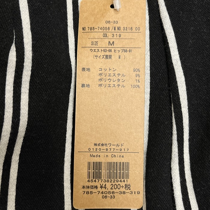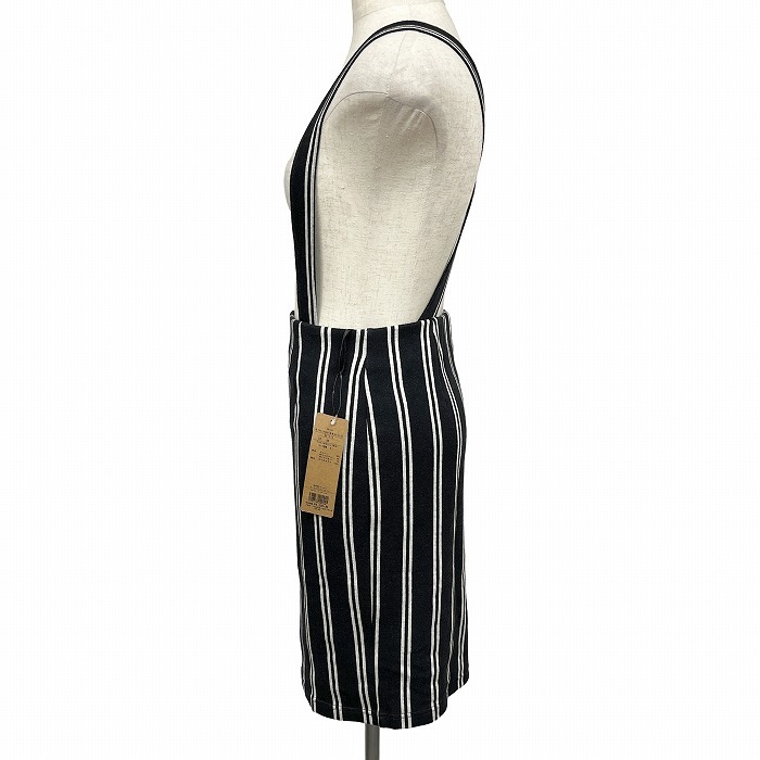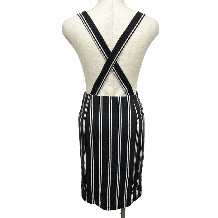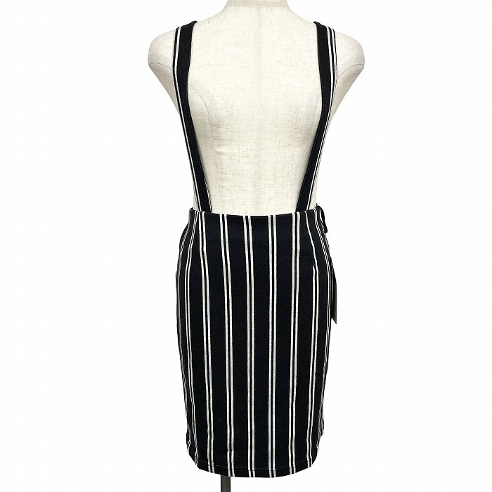 | 商品タイトル | オゾック 【新品】 微起毛 タイトスカート ストライプ ひざ丈 裏地付き 肩ひも脱着可 ウエストゴム 綿など M ブラック 黒×白 レディース |