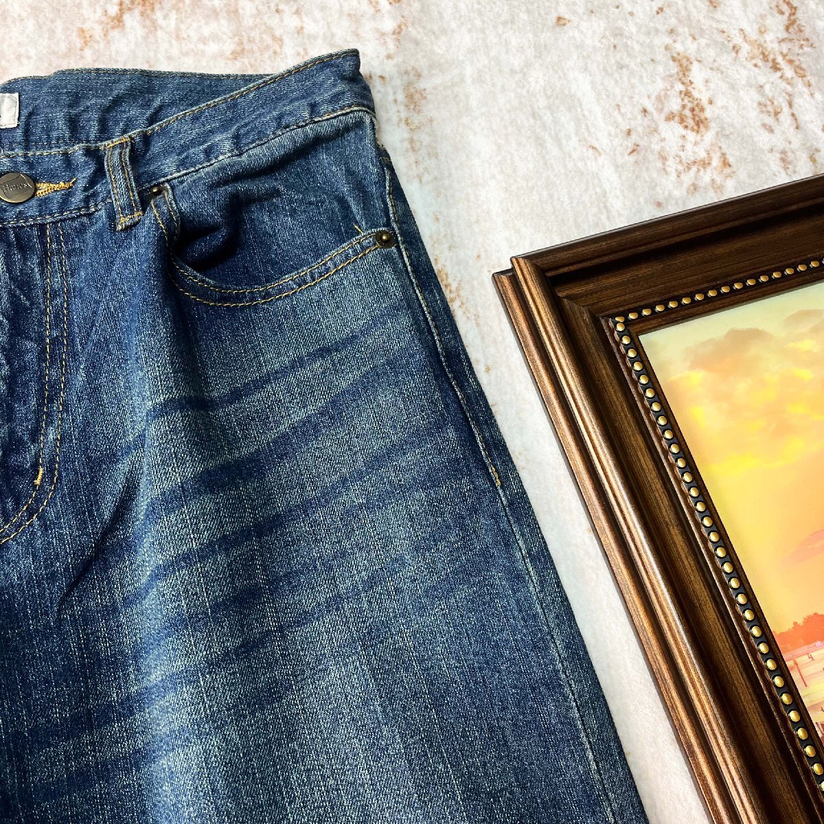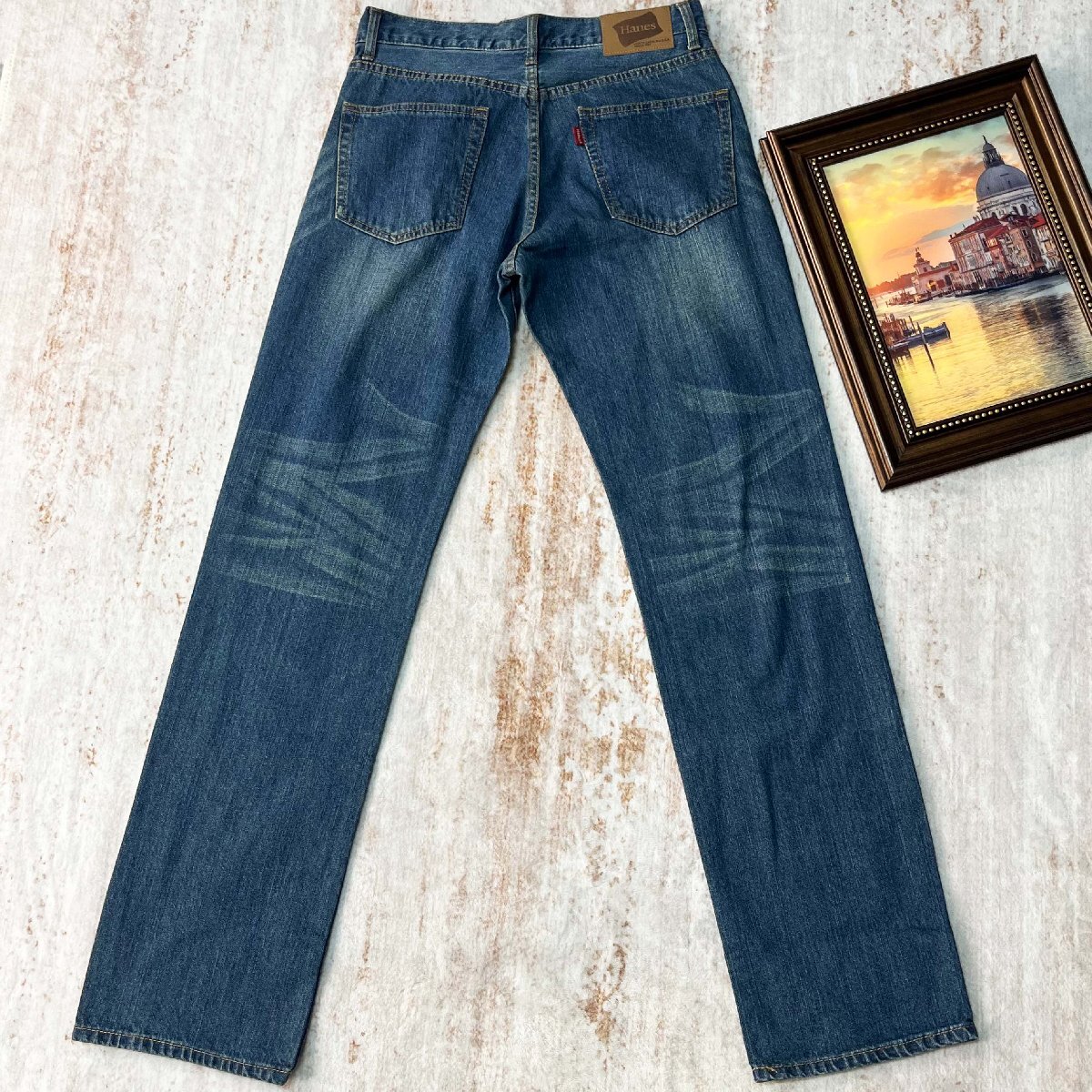 一枚限定 ロングパンツ ロンドン製造 人気 コットン混 柔らか 快適 ストレート 色落ち加工 レトロ ズボン デニムパンツ ジーンズ SIZE:L