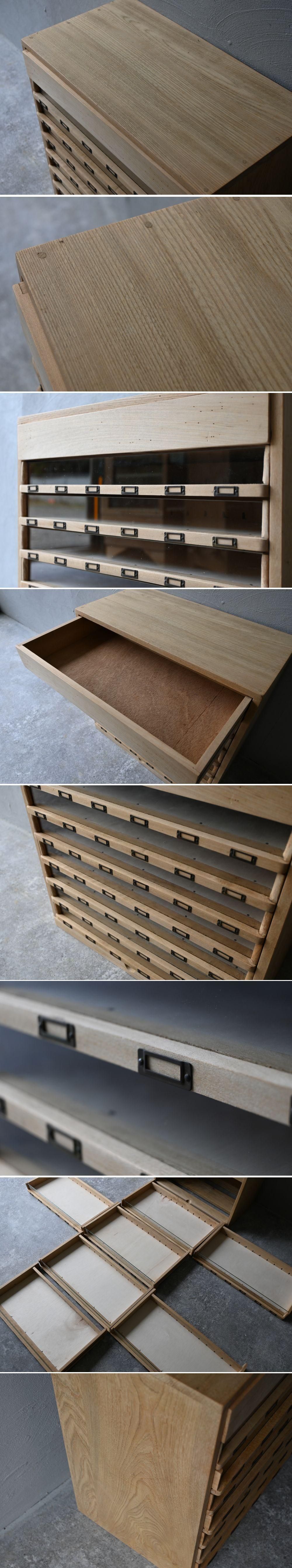 古い前ガラス引き出し8杯  アンティークアトリエ小物収納文具収納キッチン収納店舗什器