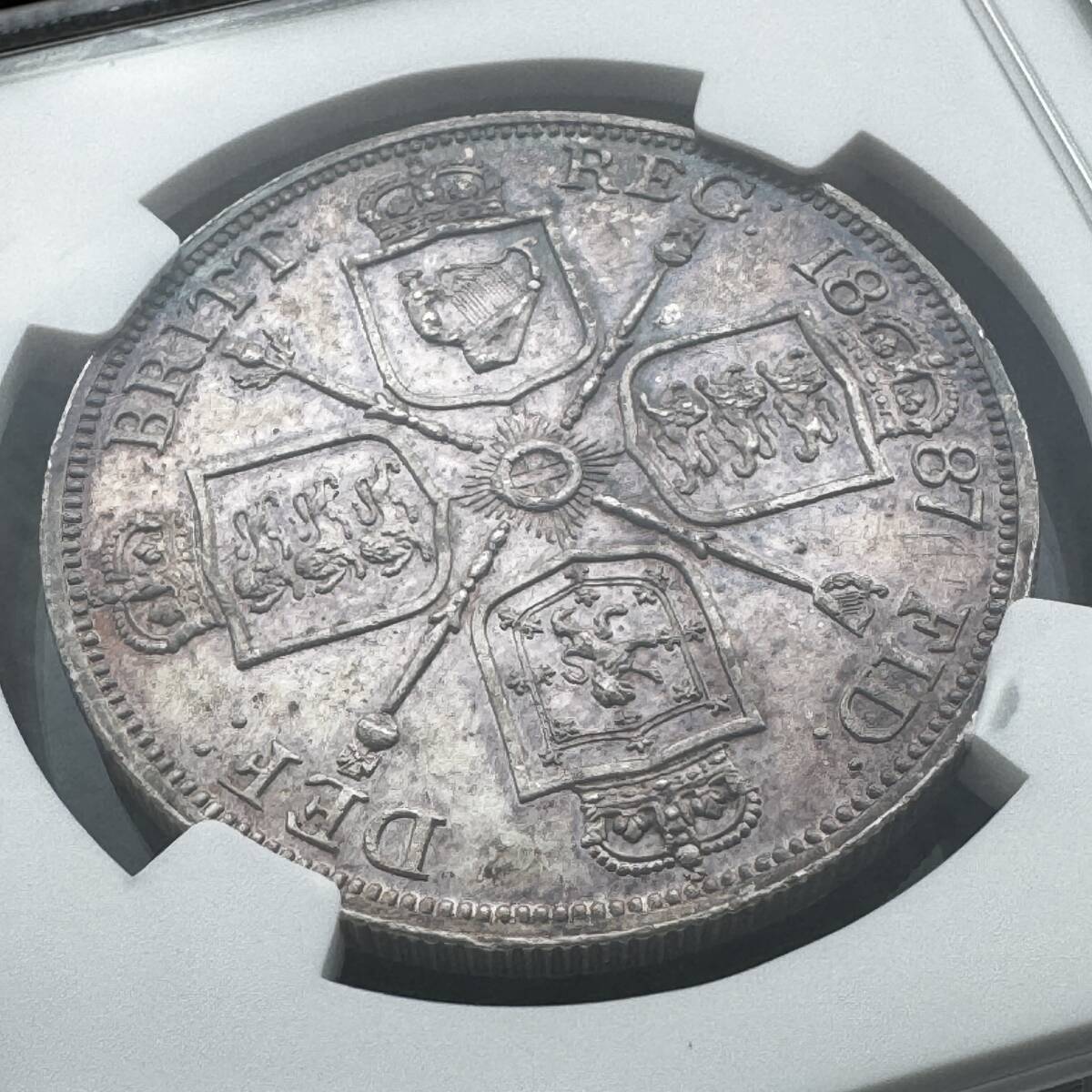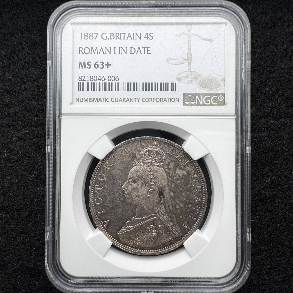 『歴史的なロマンIの魅惑 高鑑定』1887年 イギリス ヴィクトリア ジュビリーヘッド Roman I ダブルフローリン 4シリング 銀貨 NGC MS63+