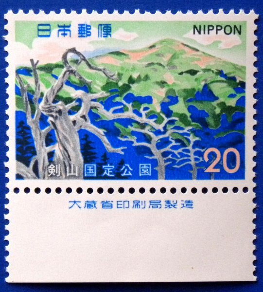 ■□■ `73年【特典あり/残り1枚】「剣山国定公園 剣山」20円切手1枚■□■大蔵省銘板