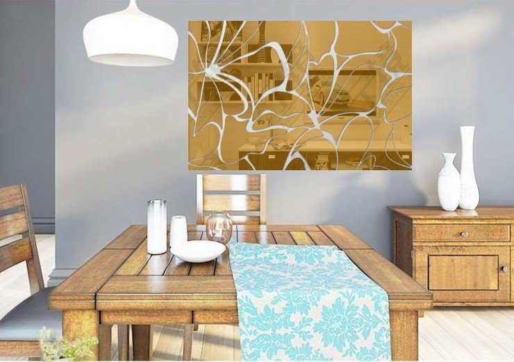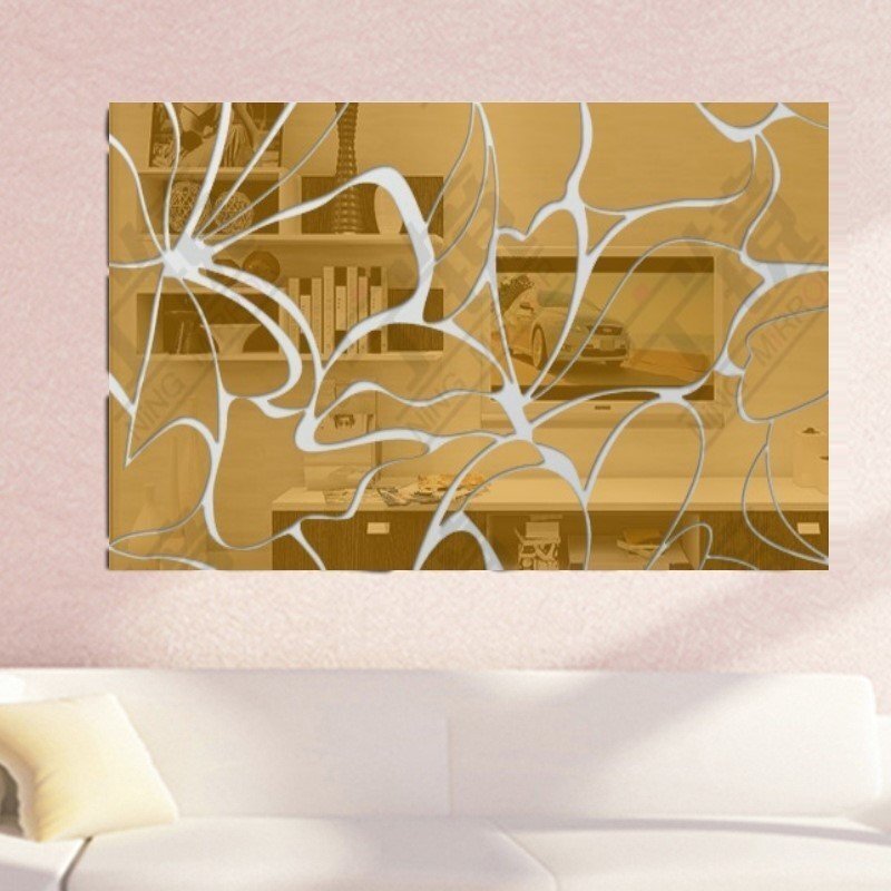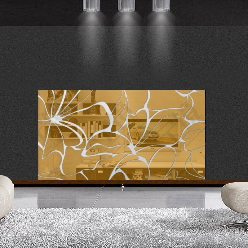 割れない鏡 デザイン 花/フラワー ウォールデコレーションミラーステッカー 【ブラウン45㎝×160㎝】 鏡 シール インテリア 海外モダン