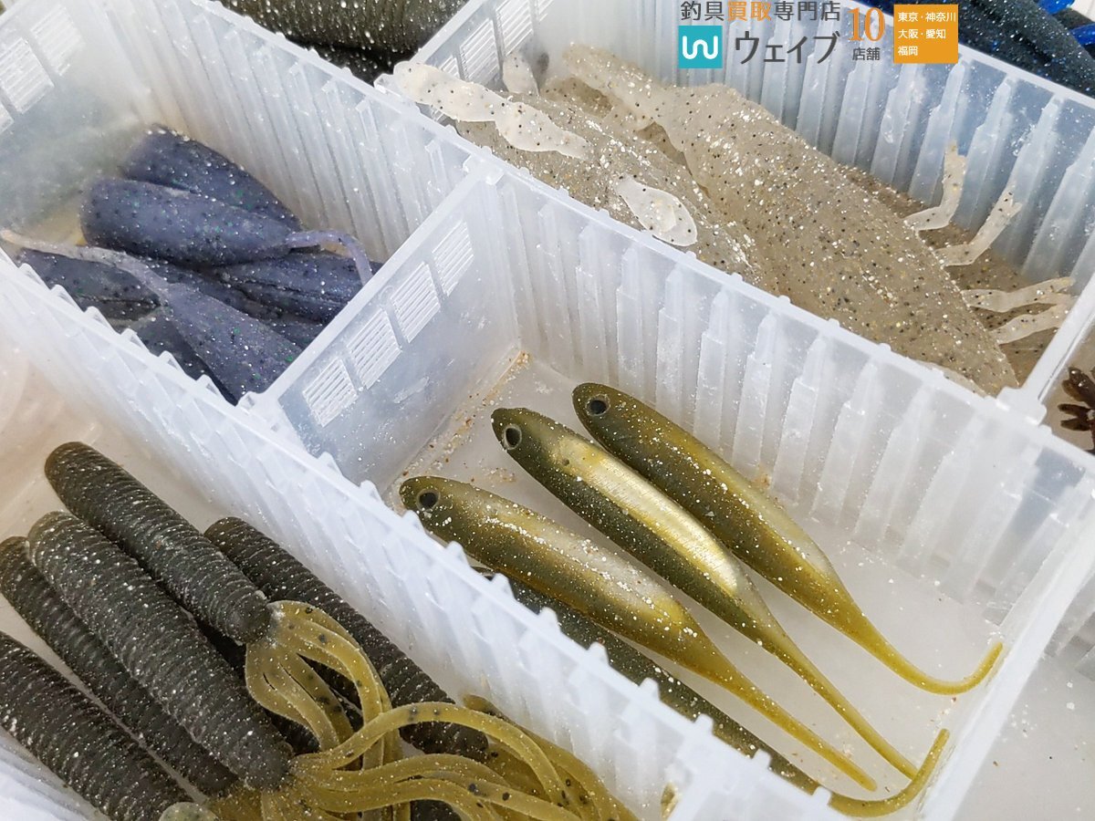 | 商品名 | ストレート・グラブ・シャッドテール 他 中古ワーム ジグヘッド フック など ケース付き まとめセット 6ケース |