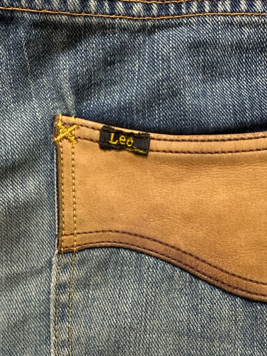 本革 レザー切替 ローライズ ユーズド加工 バナナシルエット ブーツカット デニムになり使い勝手もよく大変格好いいです