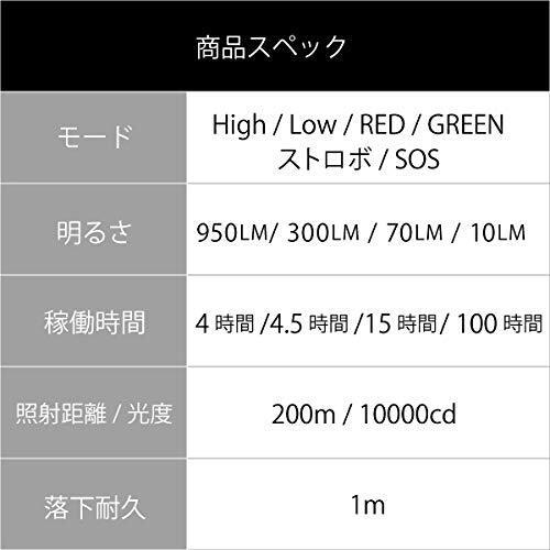 ・迷彩 全長160mm×直径29mm B70+・斬新な首振りヘッド。超硬アルミボディ。強力マグネット付。・153g(電池を除く)・18650Li-ion電池内蔵(USB充電)、照射距離:200メートル、光強度:10000cd・明るさ(点灯時間):10ルーメン(100時間)、70ルーメン(15時間)、300ルーメン(4.5時間)、950ルーメン(4時間)・落下テスト:1メートル迷彩柄でアウトドアにぴったり。 4段階の明るさ切り替えで最大950ルーメンで非常に明るく照らせます。 レッドとグリーンに色も切り替えができ、非常時のSOSフラッシュライトも備えます。 強力マグネット×首振り機能で精密機械の組立などもフリーハンズで作業可能。