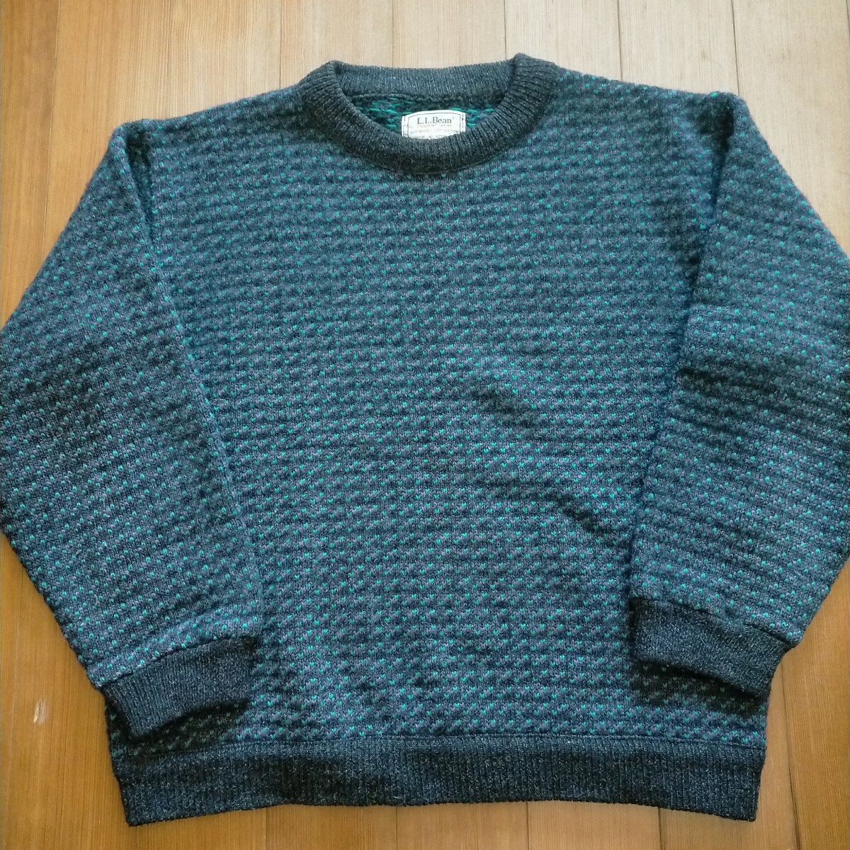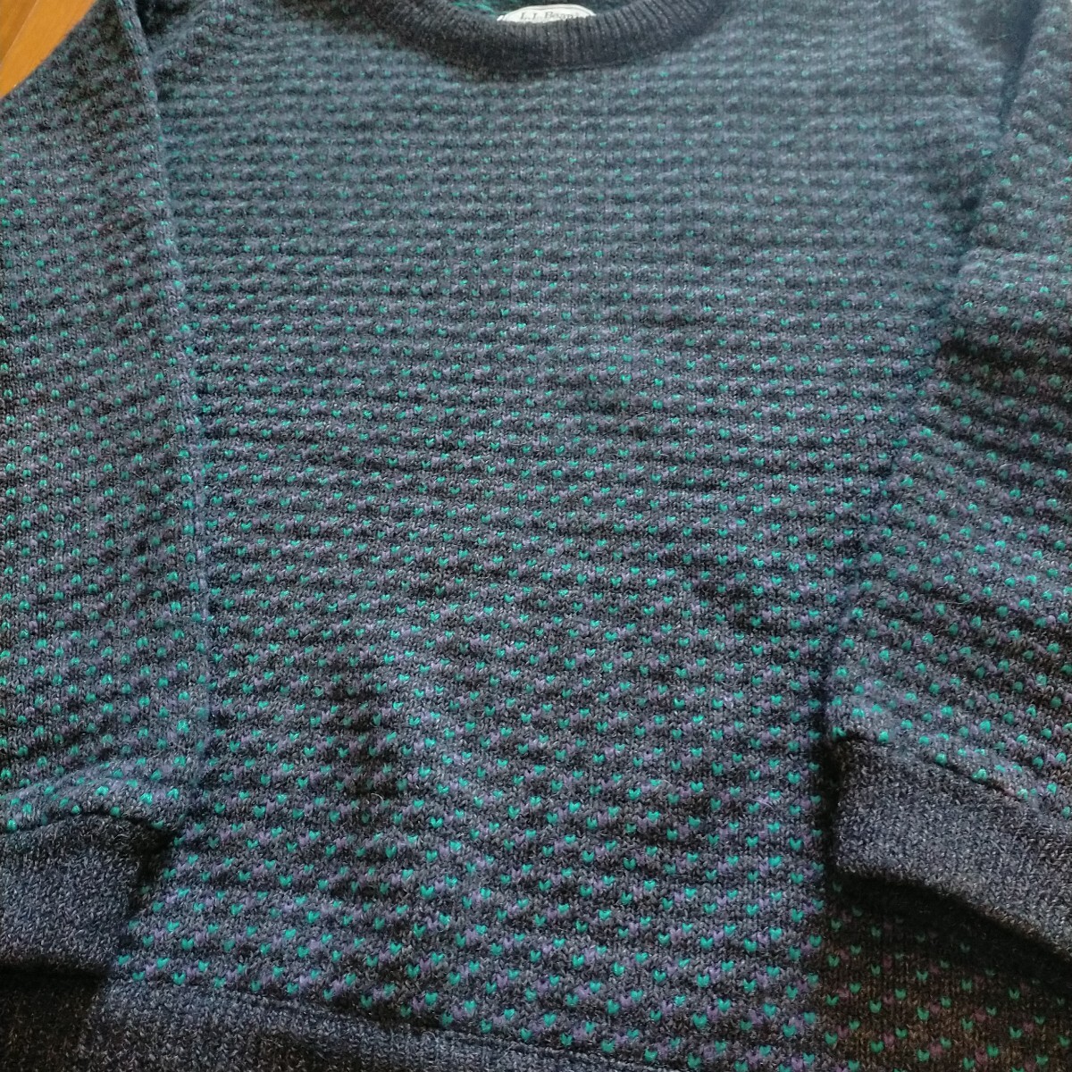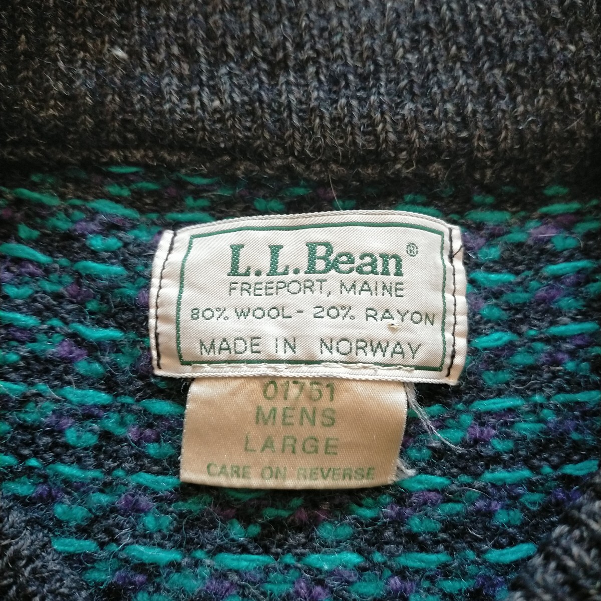 80s LL BEAN バーズアイ メンズ ニット セーター エルエル ビーン ノルウェー製 緑 紫 グリーン パープル グレー L