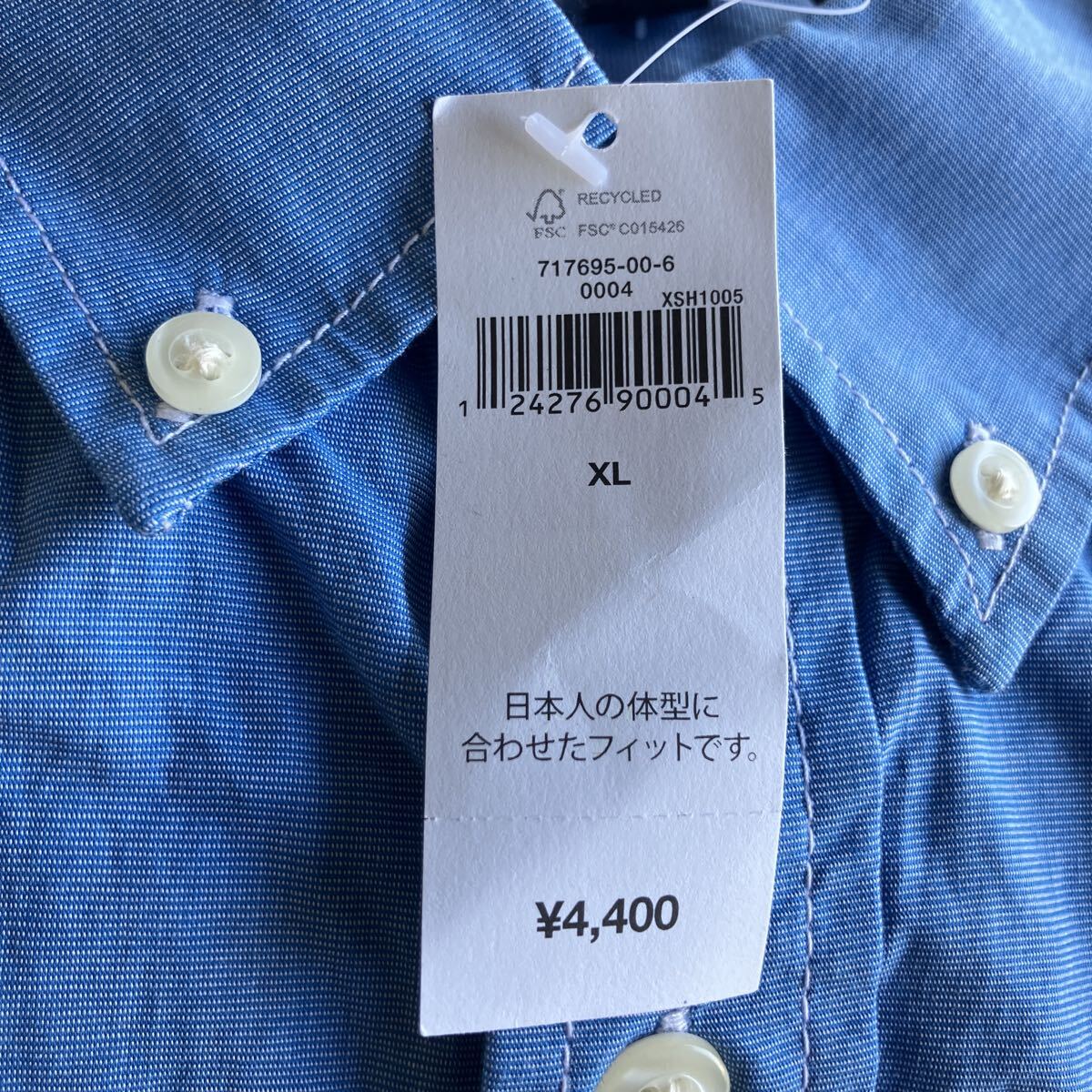 GAP slim fit ギャップ ボタンダウンシャツ XL 100%コットン 長袖 素人採寸 肩幅47センチ 着丈75センチ 身幅56センチ 袖丈64センチ 未使用品