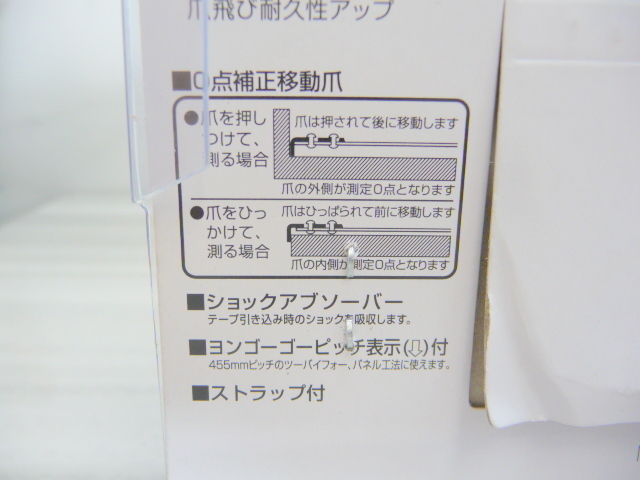 | こちらの商品は展示品未開封品です セット内容は画像のものが全てです 新品未開封品ですが パッケージにダメージが見られるものもありますので神経質な方のご入札はご遠慮ください ■特徴と仕様■ 落下時に建材にダメージを与えない、新アーマードケース仕様 落下時の衝撃から爪を守るフックガードバンパー 0点補正移動爪 ショックアブソーバー付 目盛仕様:メートル目盛、JIS1級、両面目盛 テープ幅:25mm テープ長さ:5.5m ヨンゴーゴーピッチ表示付 ストラップ付 大型ベルトクリップ付 爪飛び防止用プロテクター付 注意事項 悪い評価が多い方のご入札は取り消しさせていただきますのでご了承下さい (特に落札者都合によりキャンセルが多い方) ★ご質問について★ 記載済みや終了間際のご質問お答えできない場合があります。 また送料は料金表もしくは別ページにてご案内しておりますので個別にお答えはしかねます。 ★保証について★ 到着予定日から7日間以内の初期動作不良は返品等お受けいたします。 また作動確認などにかかった費用や作動不良のために生じた損失などは保証出来ません。 尚、落札者様のご都合により期間内に動作確認できず7日を過ぎた場合は保証いたしかねますのでご了承下さい。 またジャンク品、ノークレーム・ノーリターンの記載がある場合は該当しません。 ★返品について★ 初期不良を除き買い間違い、サイズ違いによる返品はお受けできません。 新品の場合は開封・使用後の返品はお受けできません またジャンク品、ノークレーム・ノーリターンの記載がある場合は該当しません。 ★連絡などについて★ オークション終了後3日以内にご連絡が無い場合は落札を取り消しさせていただきますのでご了承下さい。またオークション終了後7日以上経ち入金確認できない場合も同様とさせていただきます。 夜8時以降に終了したオークションのご連絡は翌日の午前中になります。 上記の内容をご了承の上ご入札下さい。 配送方法 下記の2つからお選びいただけます。 1)レターパックプラス ¥600(追跡・対面渡し) 2)ヤマト宅急便(事故補償・追跡・時間指定) ※運送中の事故補償が無い発送等は当方では一切責任を負いません。 お届け先の県に該当する送料を商品代と一緒にお振込み下さい。当方の梱包用資材は商品に直に触れるエアーキャップ以外空きダンボールを再利用しています。予めご了承ください。 はこBOONには対応していません。 当店営業時間内(10:00~19:00)なら直接お手渡し可能です。 | |||