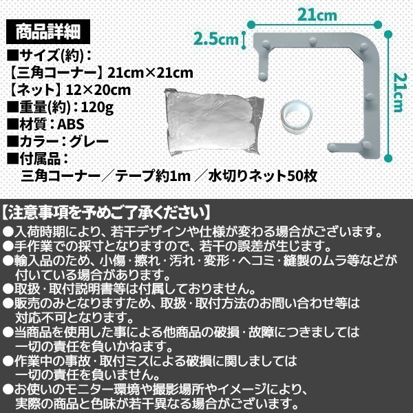 付属品:三角コーナー 、テープ約1m、水切りネット50枚
