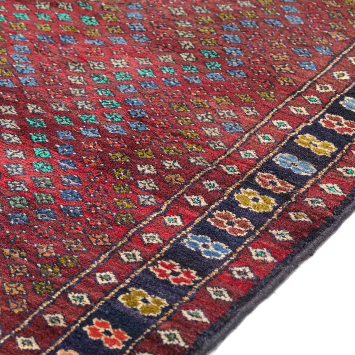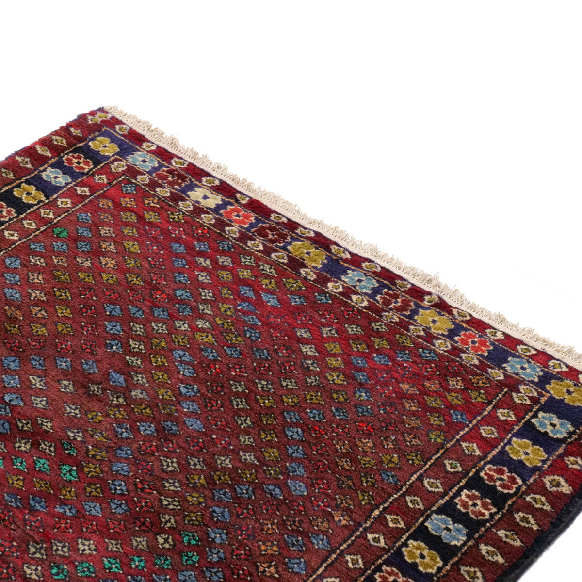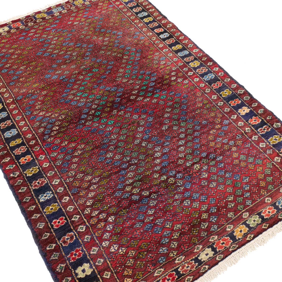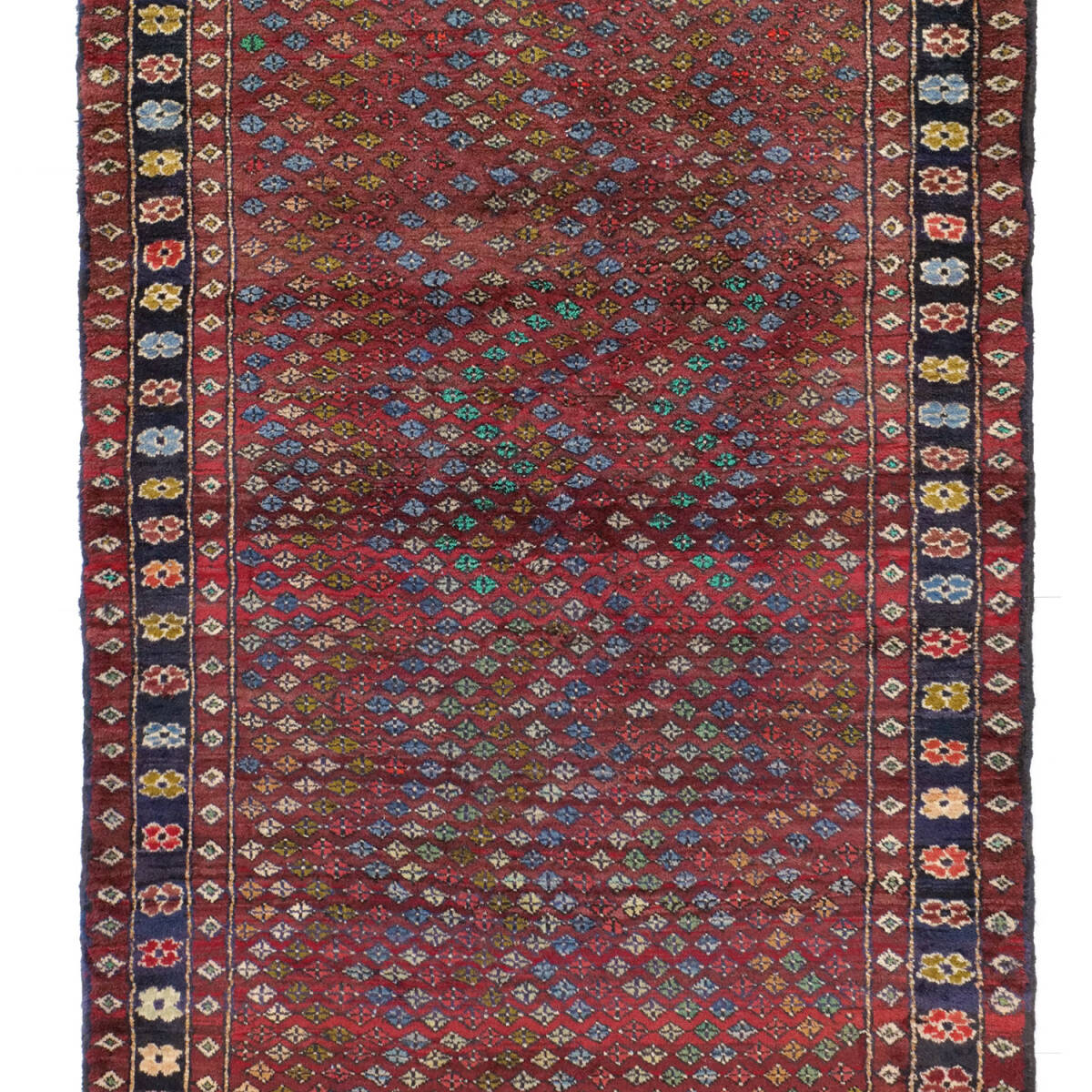 トルバトジャムのラグは、ホラーサーン地方特有の繊細な織りと優美な発色が魅力です。特に本作は均整の取れた構図と高密度な織りによって、上質な手仕事の技術を存分に感じられるセミアンティークの逸品です。