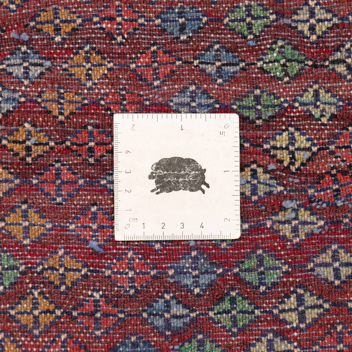 赤を基調に青・緑・黄・白が加わり、全体に華やかで明るい印象を与えます。小柄なモチーフの中に手仕事ならではのわずかな揺らぎが見られ、それが独特の温かみと表情を生んでいます。コンディションも良好で、使いやすいサイズ感です。