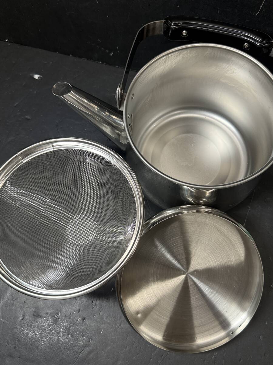 やかんの出品です。 容量は約2.5Lです。 状態など写真にてご確認ください。 |