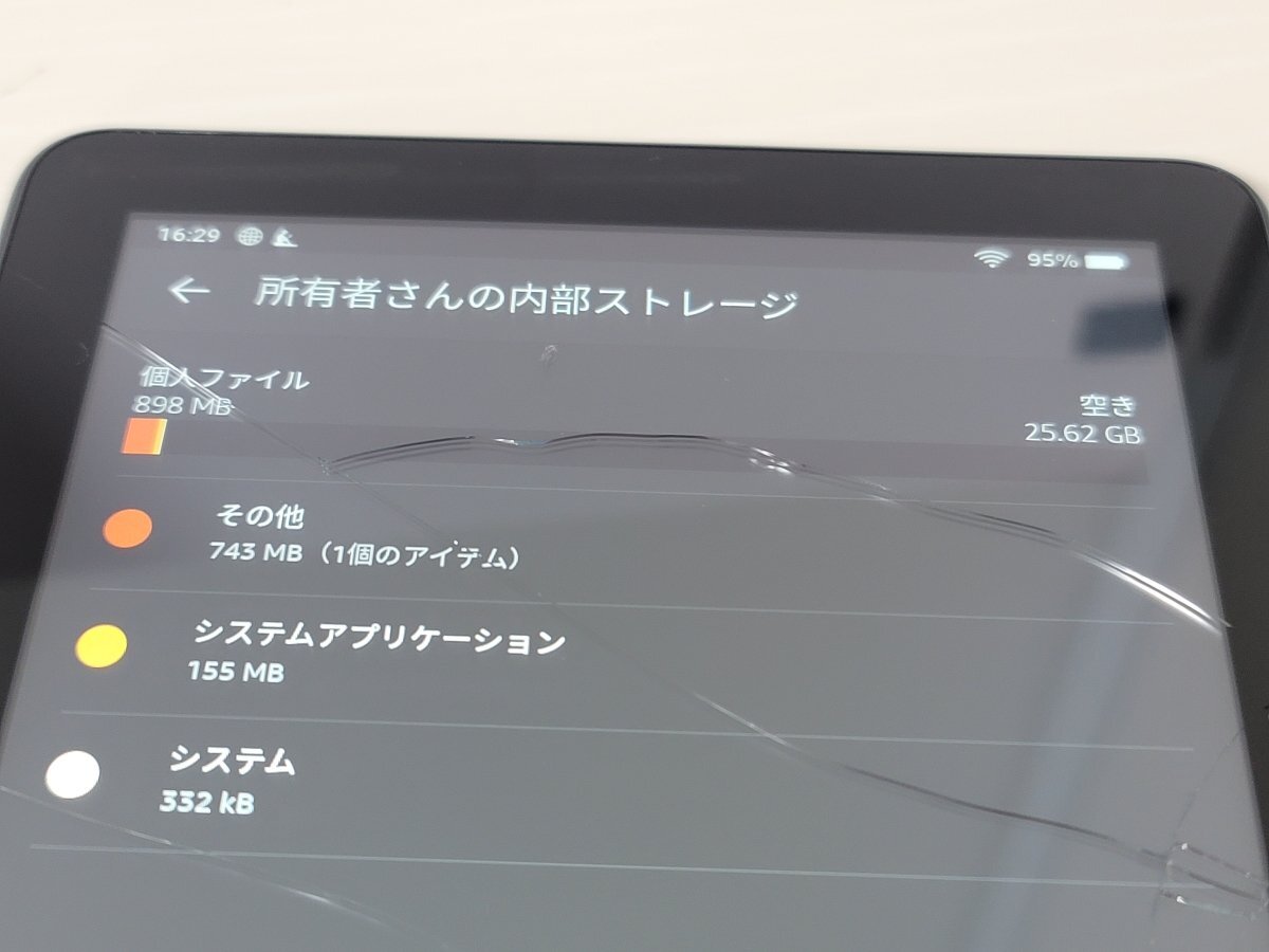 【外装状態】: J 画面液晶が割れています。画面液晶に黄色の焼けがあります。側面、背面に小傷や擦れがあります。