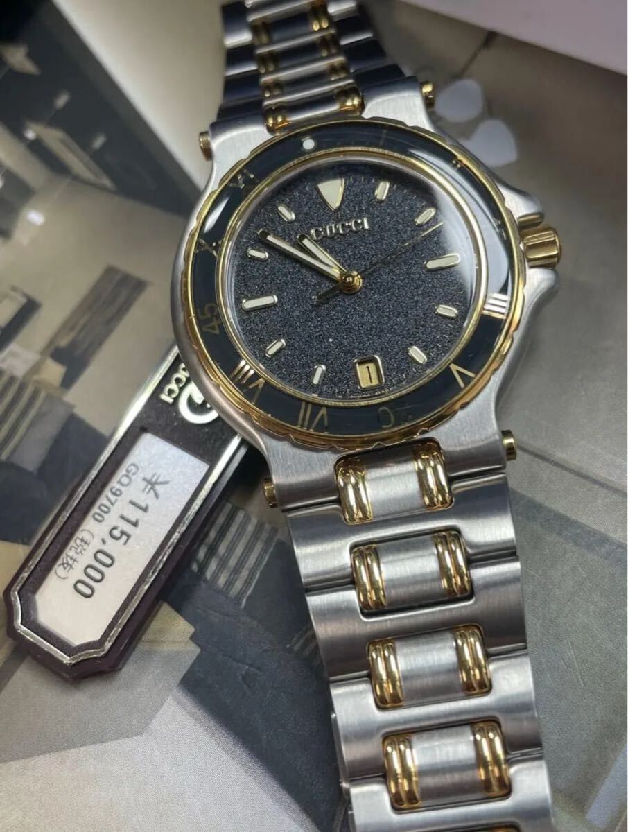 ●高級感漂うコンビカラーのGUCCI、1990年代製 スイス製 の高級ヴィンテージ クォーツ腕時計です。