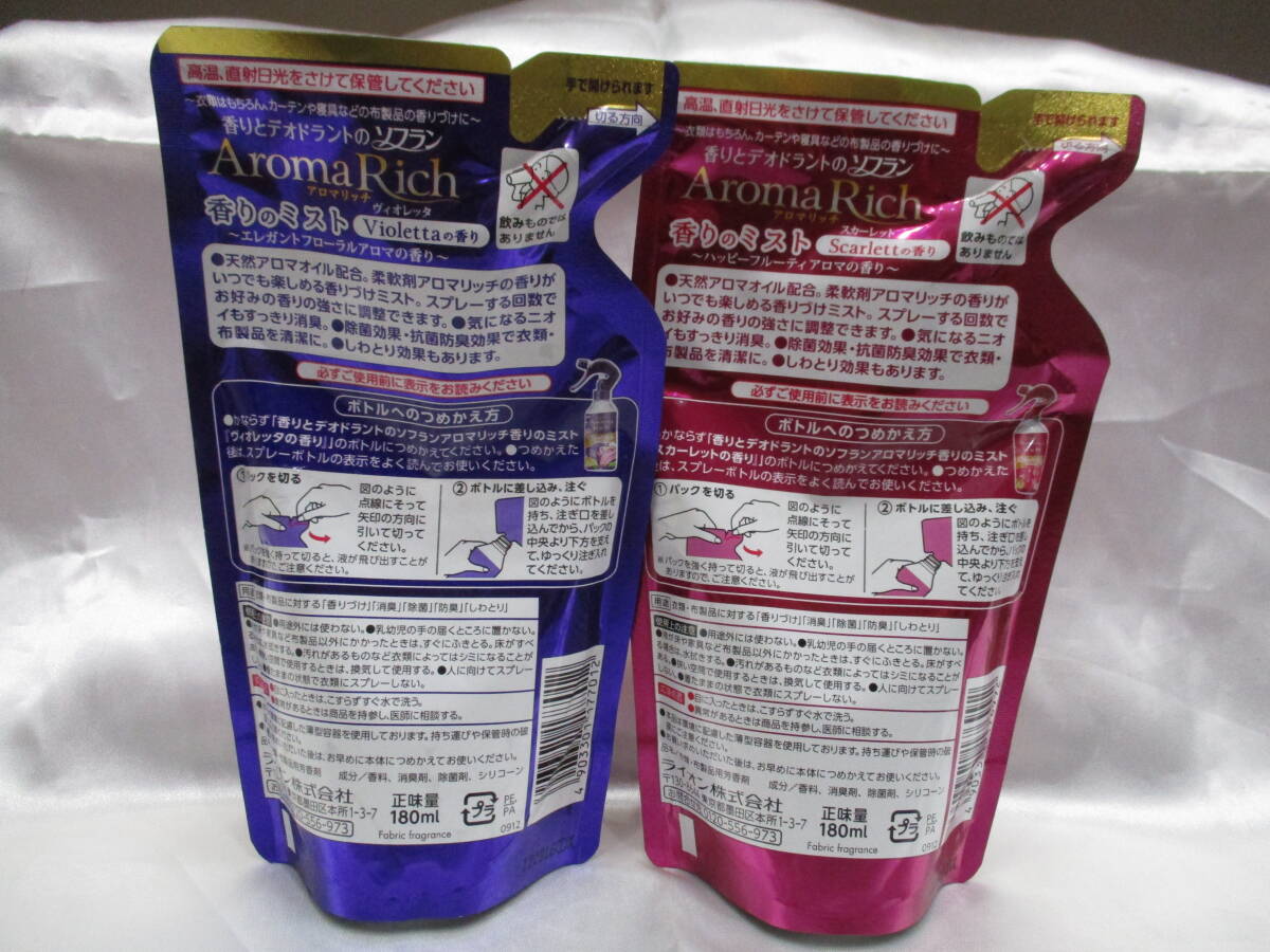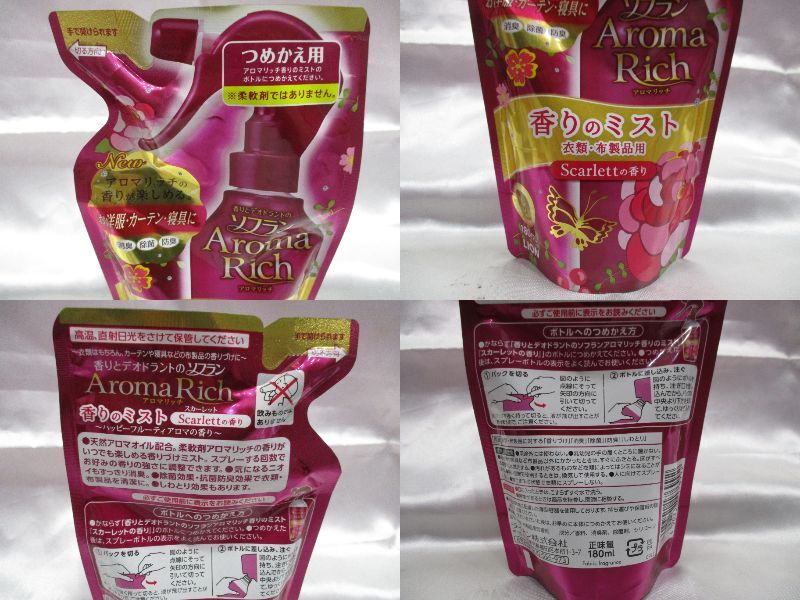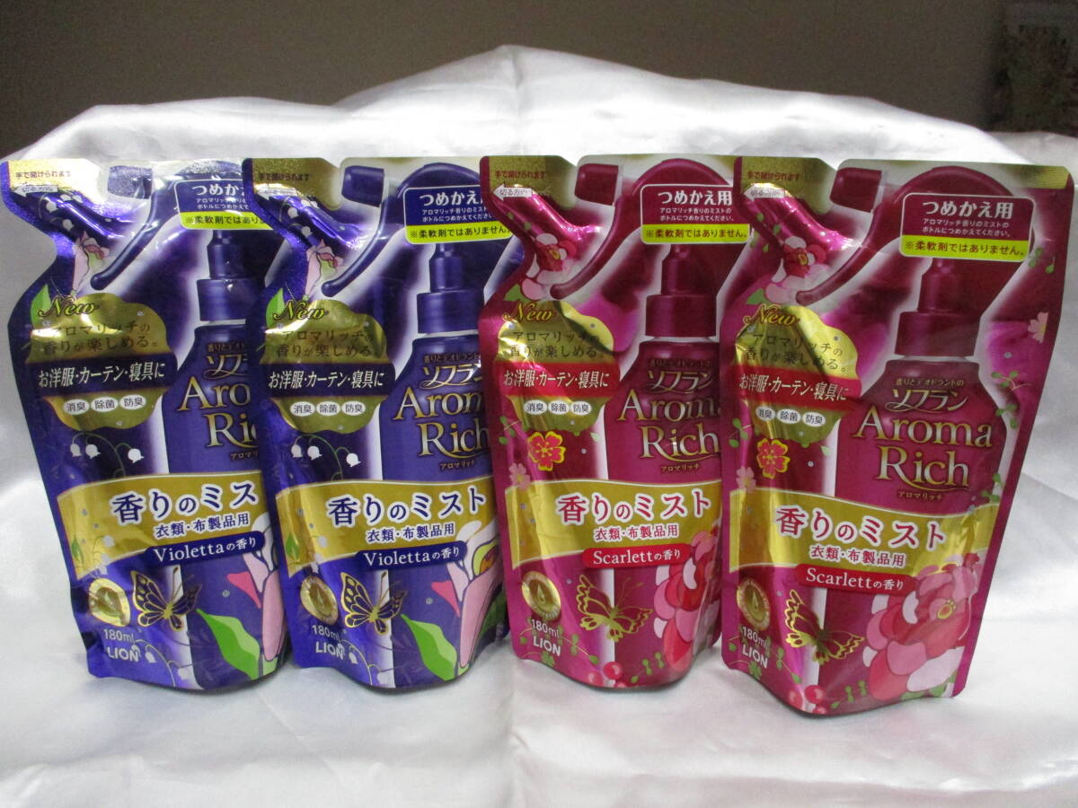 | LION ライオン ソフランアロマリッチ 香りのミスト 詰め替え用 180ml 衣類・布製品用 ヴィオレッタ スカーレット おまとめ4点 未開封品 |