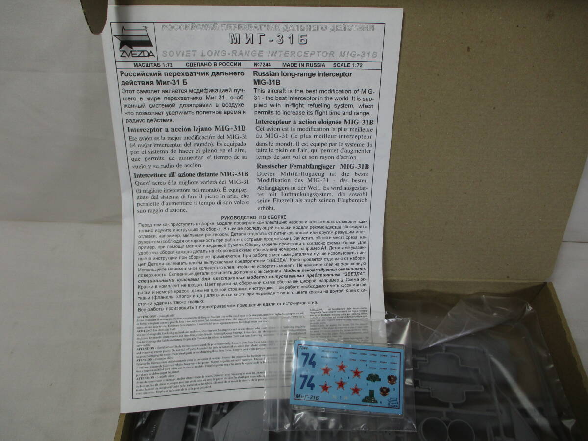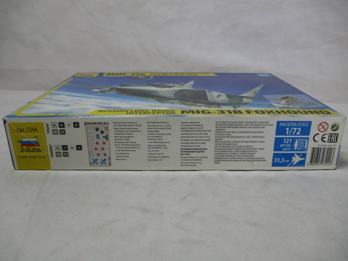 ZVEZDA 1/72 MIG-31B FOXHOUND 未組立品です。年月経過の為、外箱にダメージ等があります。未組立品ですがノークレームノーリターンでお願いいたします。 発送はゆうパックサイズ80を予定しています。 ~注意事項~ 当方、ゆうパックの正規の送料を頂き、 発送は月曜日、水曜日、金曜日の集荷での発送になります。また、落札後の発送方法の変更も対応はいたしませんのでその事をご理解頂いて入札をお願いいたします。