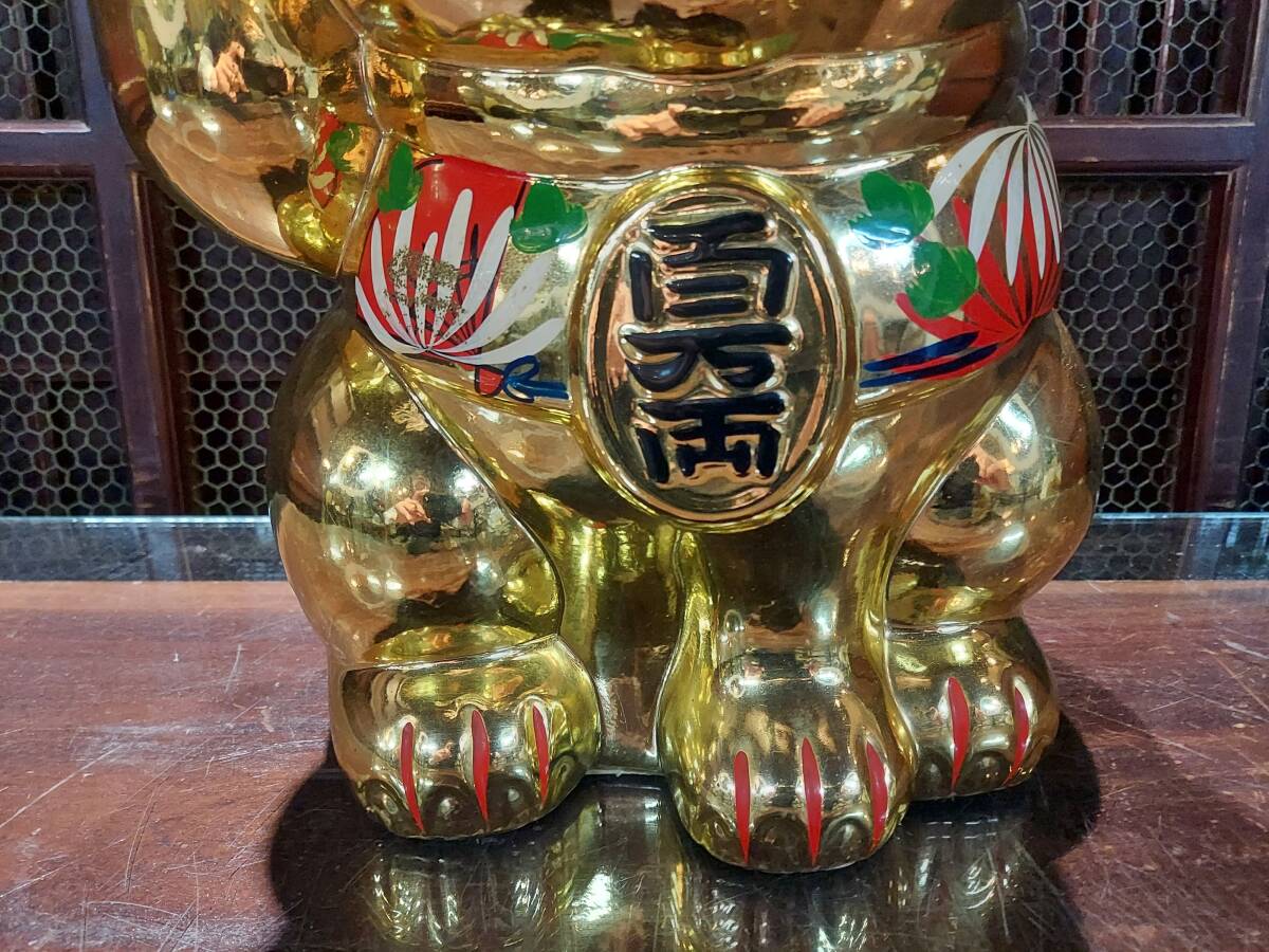| 常滑焼 金色 招き猫 GOLDEN CAT 置物 貯金箱 縁起物 H36cm大型 |