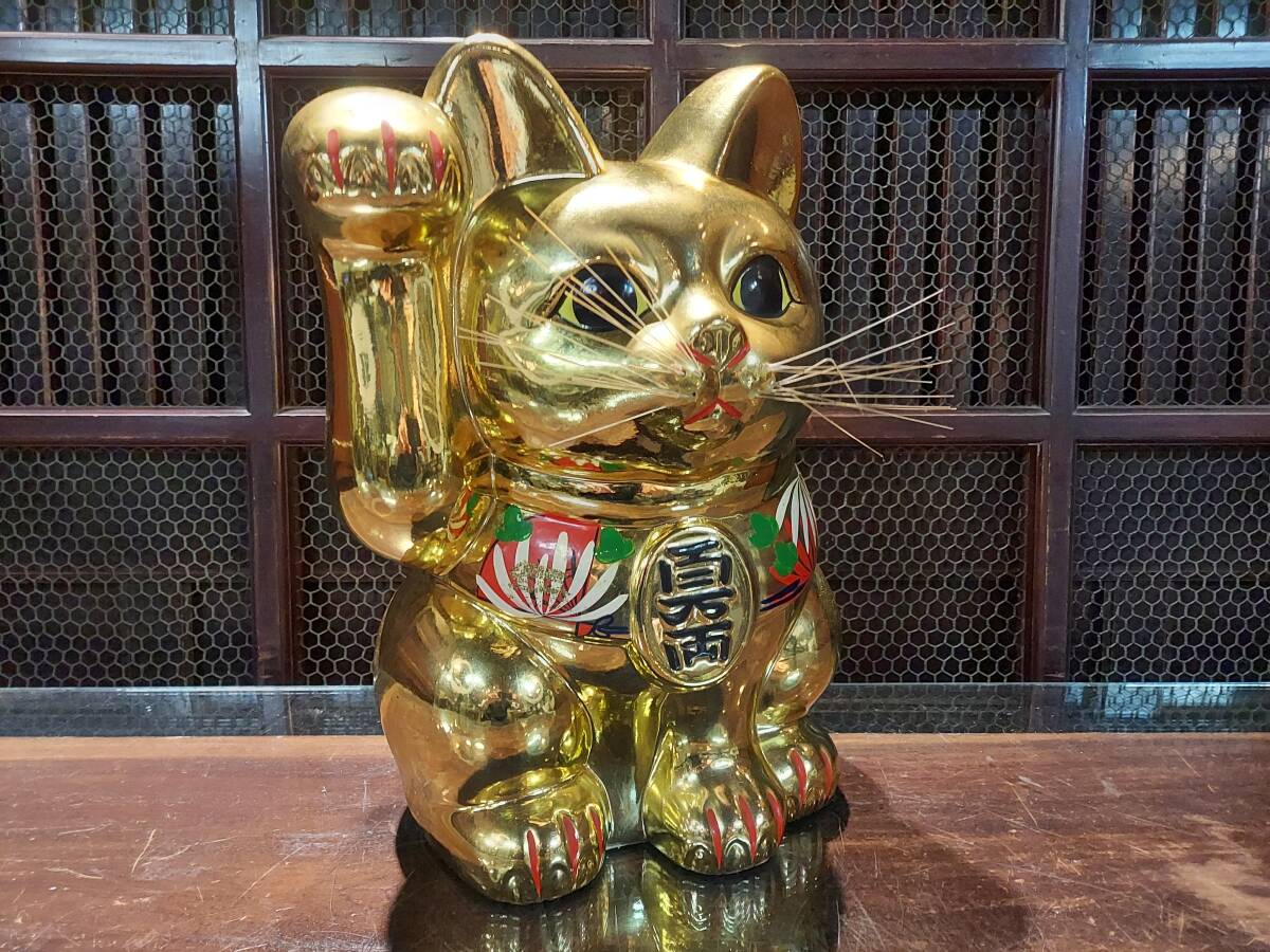| 常滑焼 金色 招き猫 GOLDEN CAT 置物 貯金箱 縁起物 H36cm大型 |