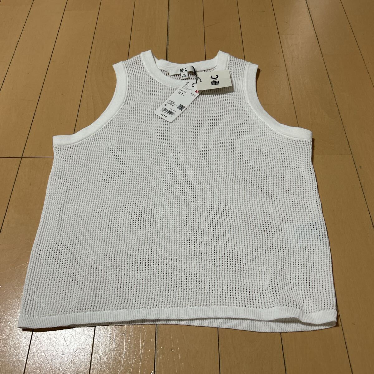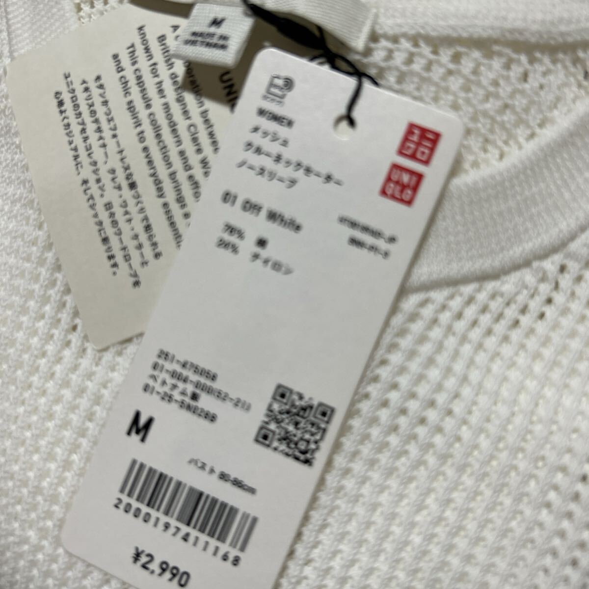 新品未使用ユニクロUNIQLOメッシュクルーネックセーターノースリーブM白