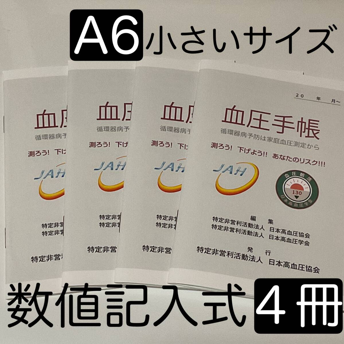 小さいサイズ 血圧手帳 数値記入式 A6サイズ 4冊セット