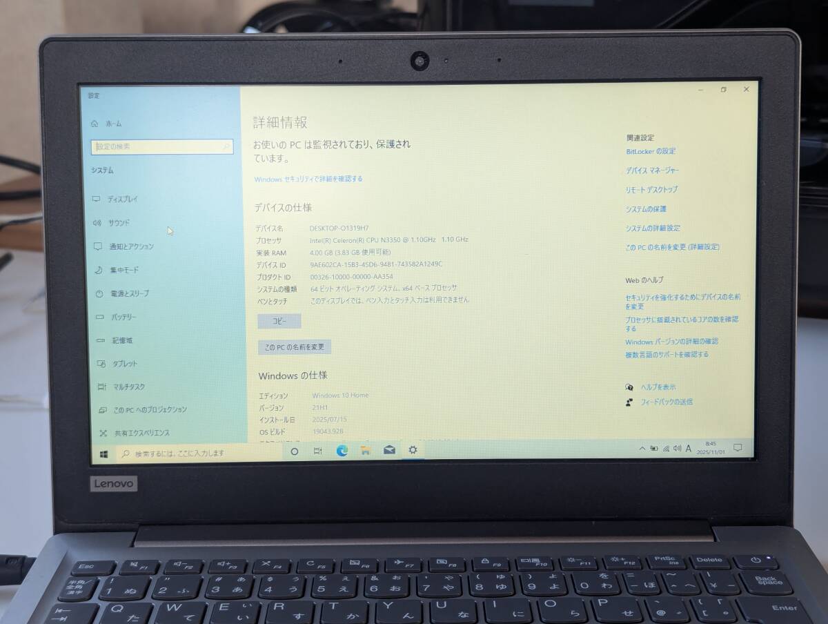 Lenovo ideapad 120S-11AP 81A4 ノートパソコン WIN10/4GB/SSD64GB 動作確認OK 本体のみ 202507151300