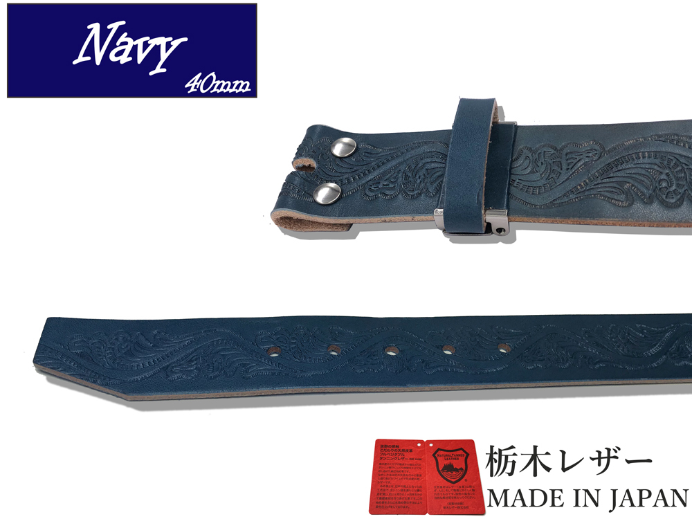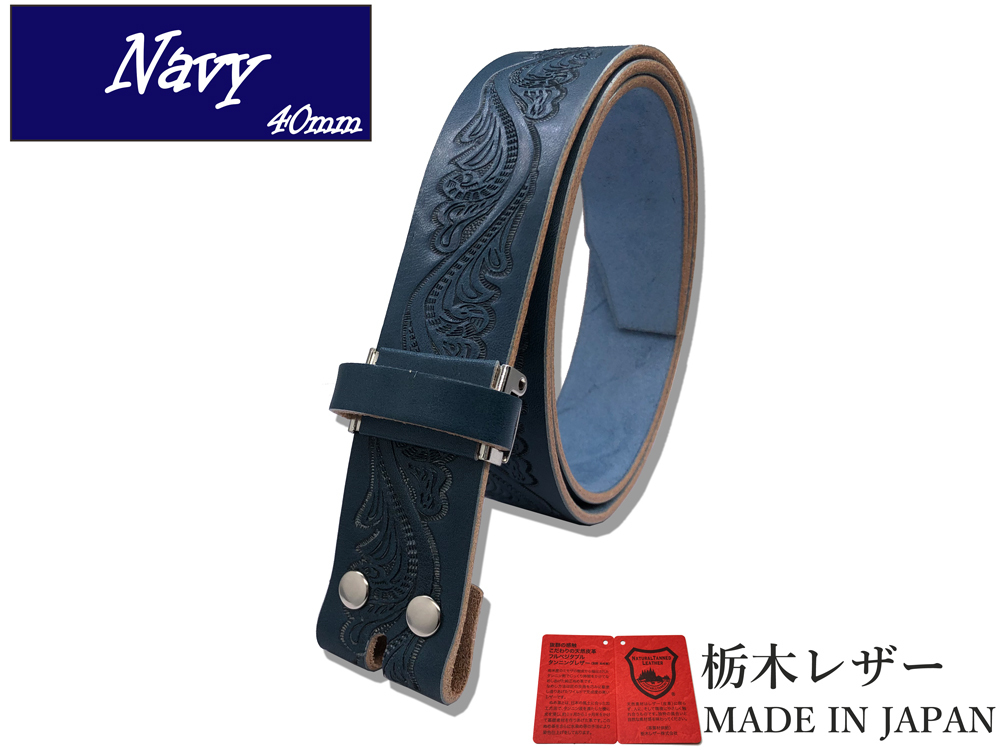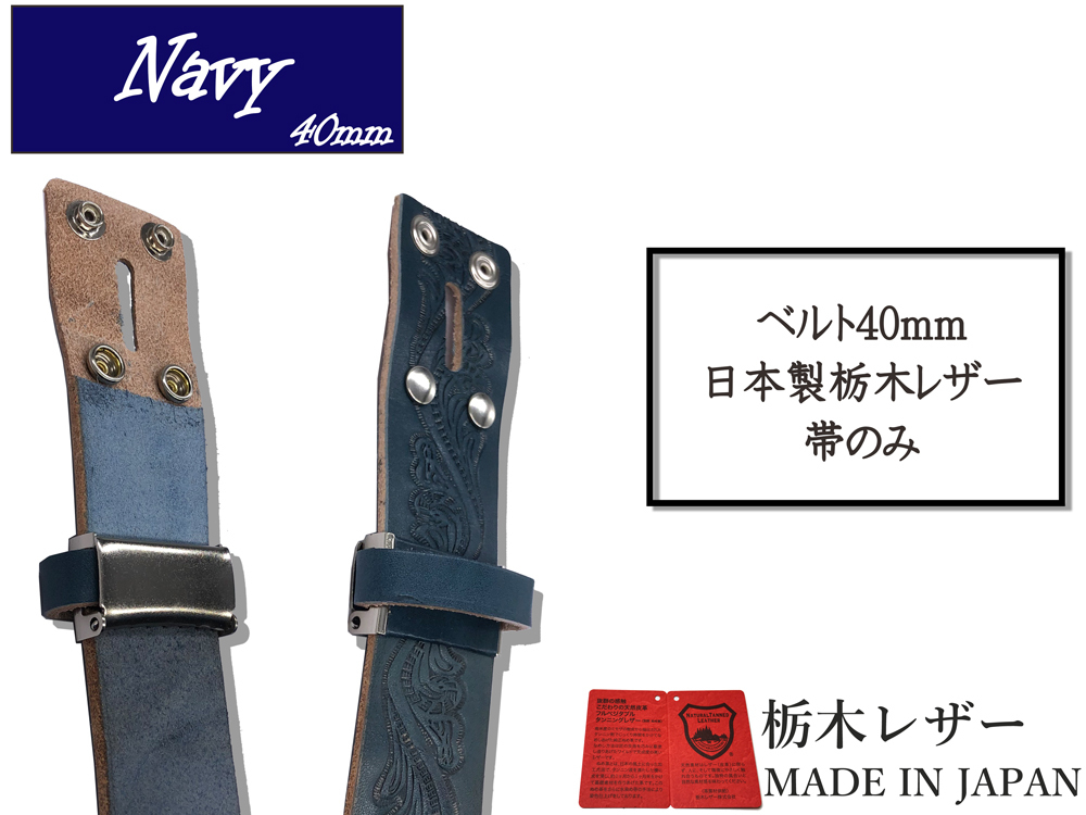 新品 栃木レザー カジュアルベルト Mサイズ メンズ クラフト 帯のみ 本革 交換用 取り換え 牛革 40mm 紺色 ネイビー 銀ホック W042NVS