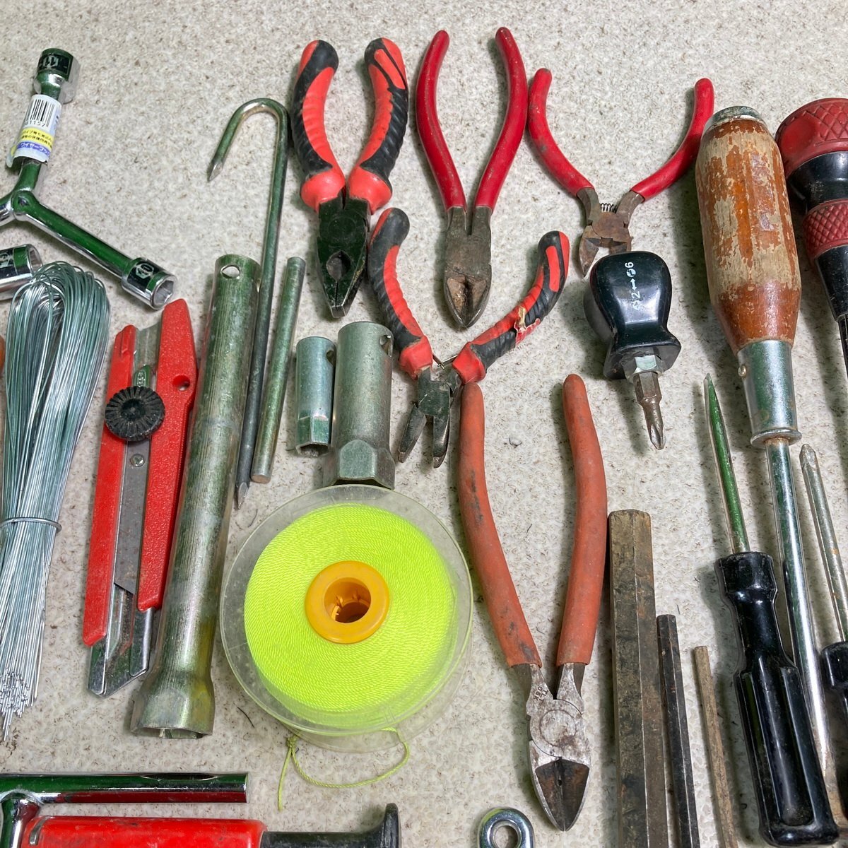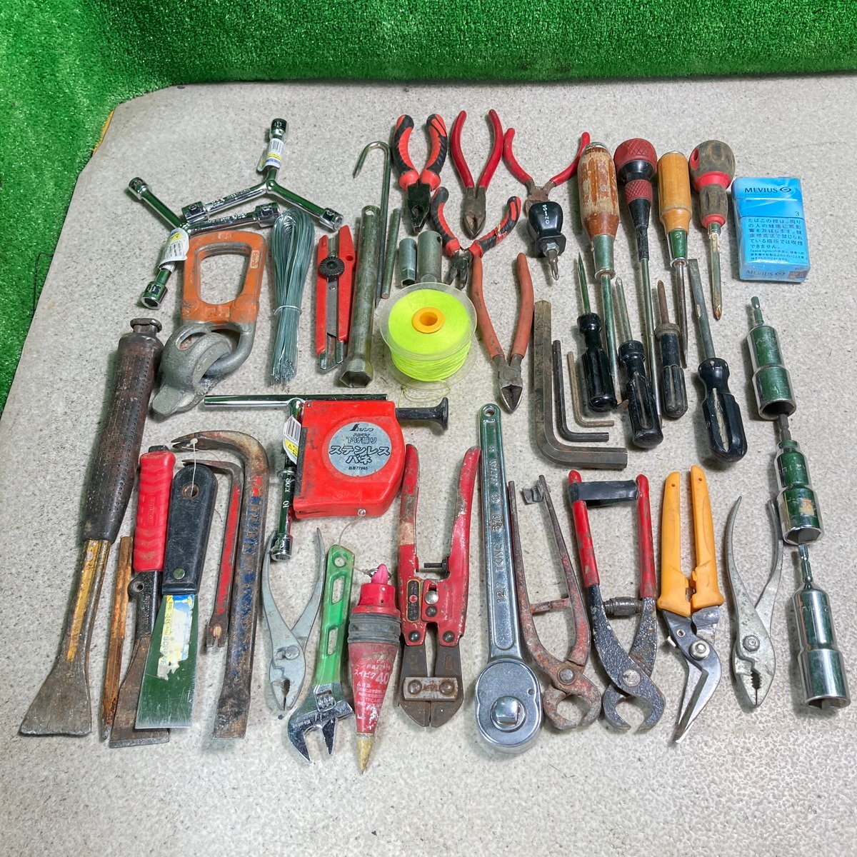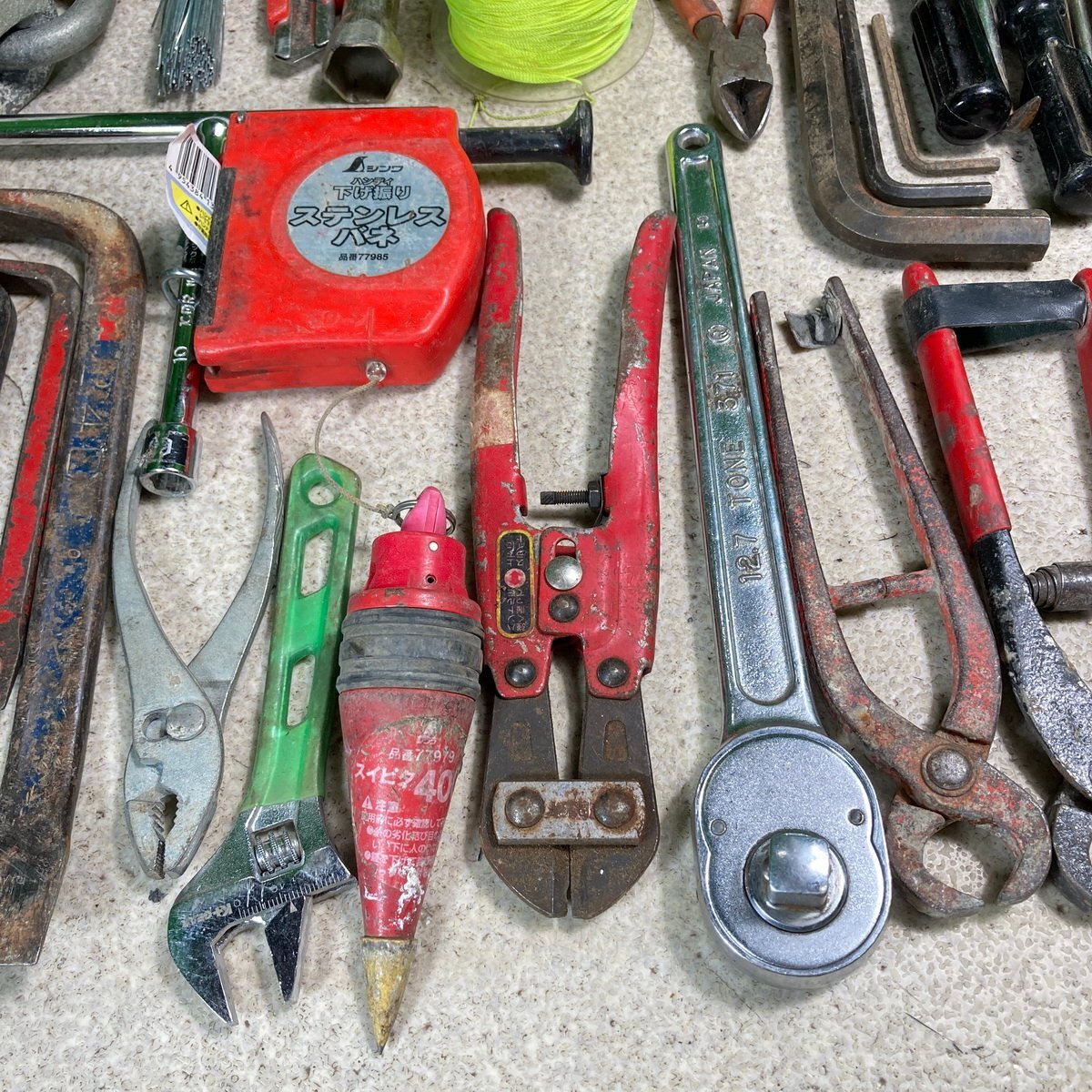 | 商品 | 左清i393 作業工具各種 ■ 下げ振り クリッパー タガネ デハアンカー 水糸 ペンチ ラチェットレンチ 喰切 ボックスレンチ 釘抜バール ドライバー 21mmソケットビット 等 ★大量セット |