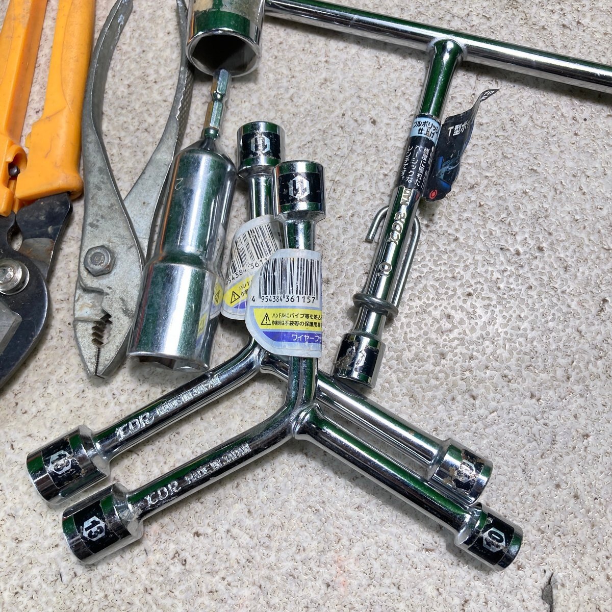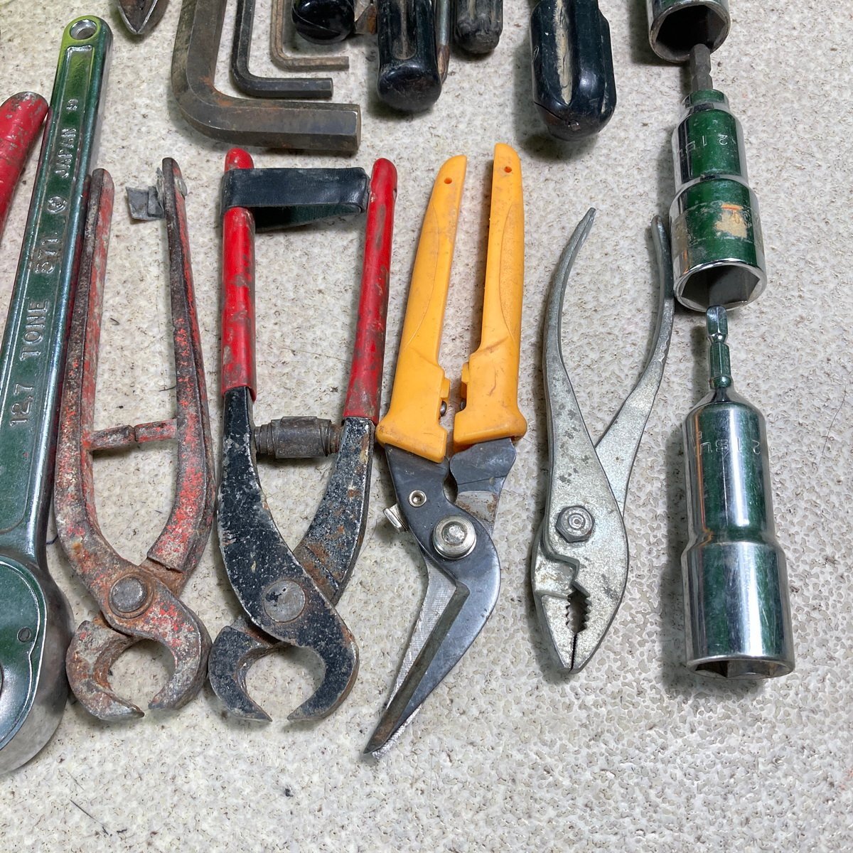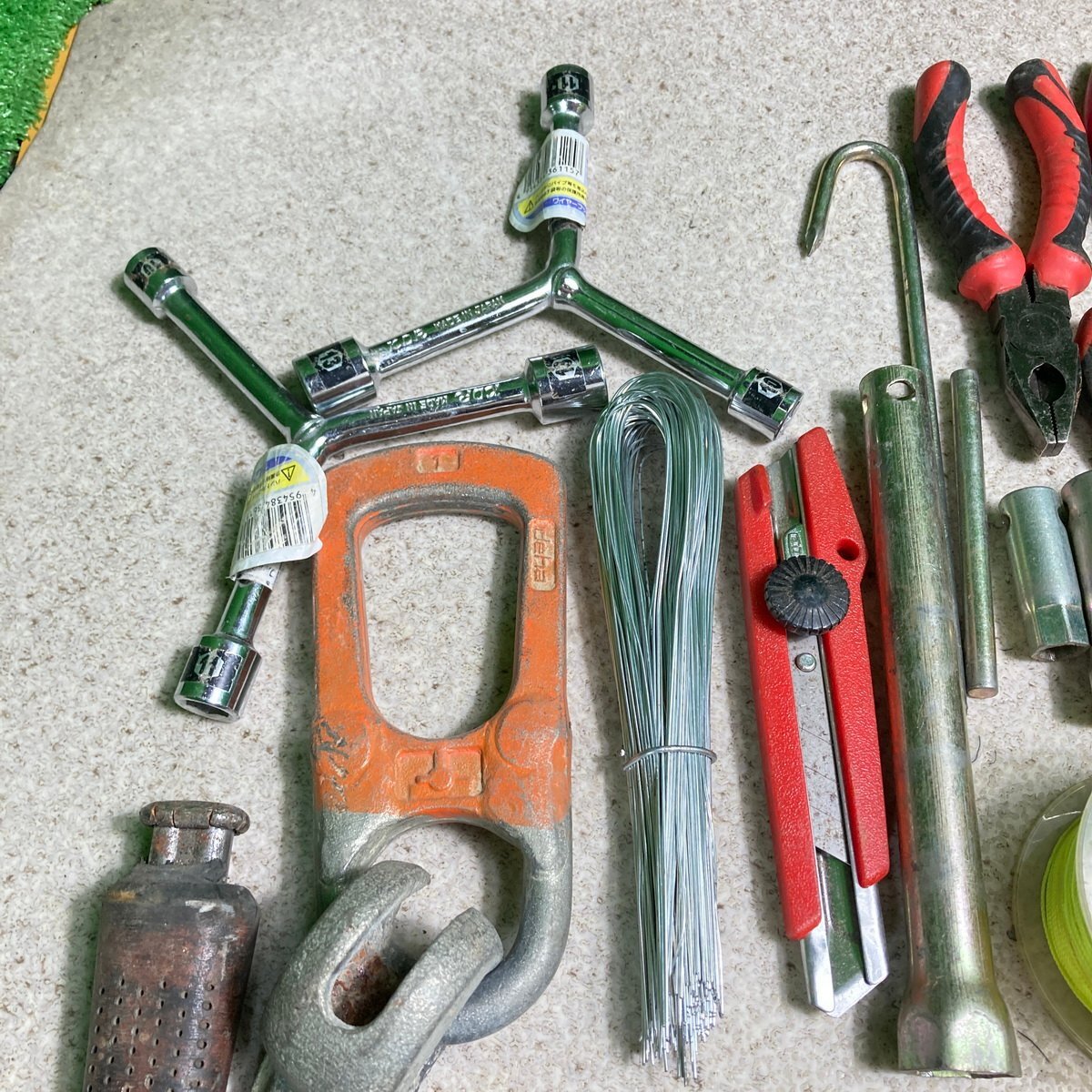 | 商品 | 左清i393 作業工具各種 ■ 下げ振り クリッパー タガネ デハアンカー 水糸 ペンチ ラチェットレンチ 喰切 ボックスレンチ 釘抜バール ドライバー 21mmソケットビット 等 ★大量セット |