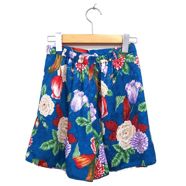 リリーブラウン Lily Brown ショートパンツ ワイド タック 花柄 ドローストリング F 青 ブルー /NT11 レディース