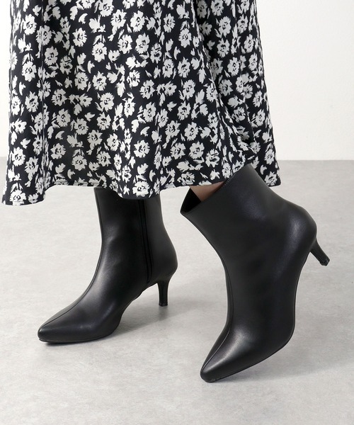 キーワード:ブーツ レディース ショート ヒール ピンヒール 紐なし 秋 冬