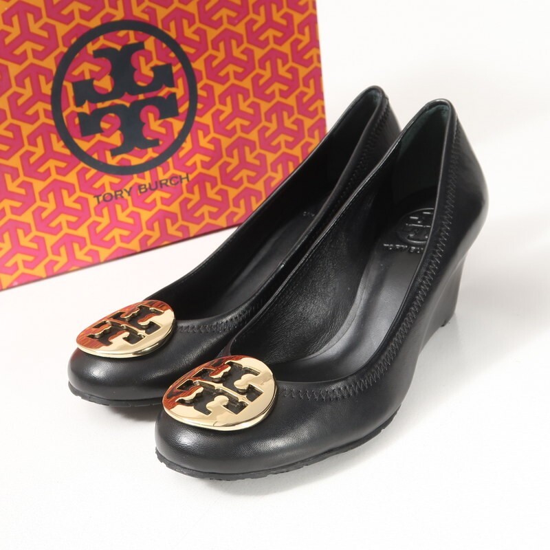 | GS3773□トリーバーチ/TORY BURCH 6 1/2 M(23.5cm相当) SALLY WEDGE MESTICO レザー メタルロゴ ウェッジソール ラウンドトゥ パンプス 靴 | |||