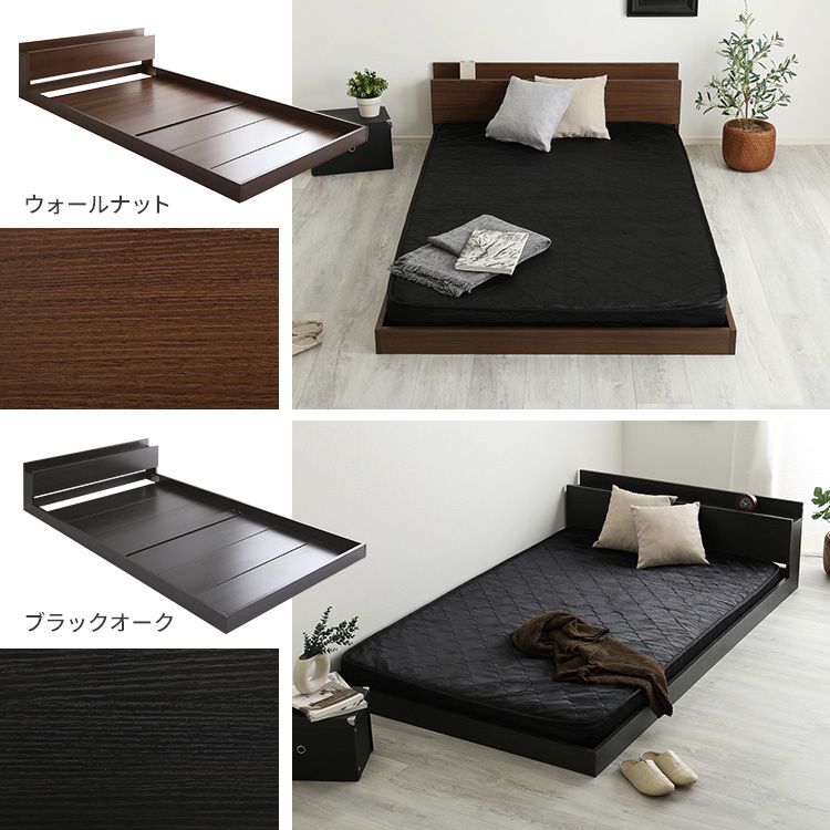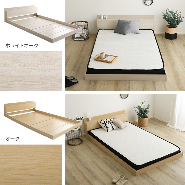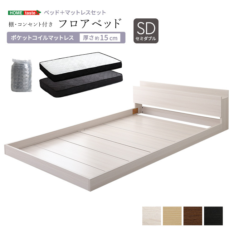 デザインフロアベッド ポケットコイルマットレスセット(セミダブル) オーク/ホワイト