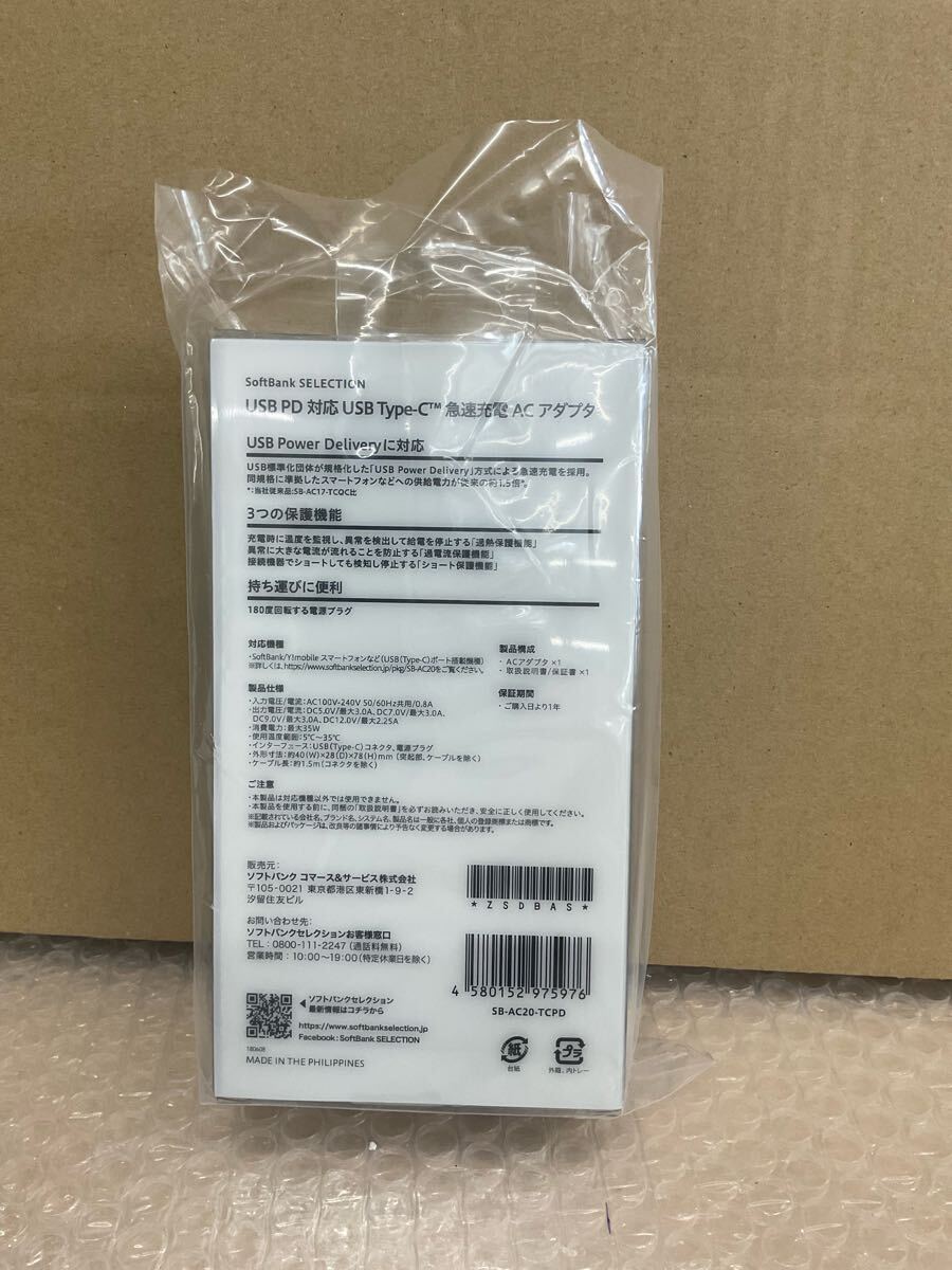 ◎(D1749) 新品 ソフトバンク USB PD対応 Type-C 急速充電 ACアダプタ ケーブル長1.5m (B2-3)