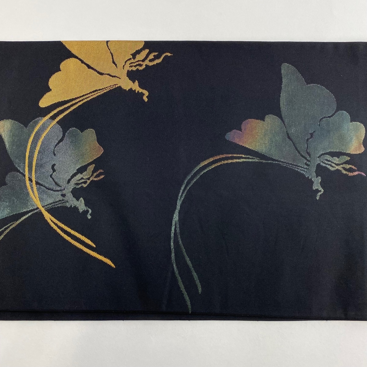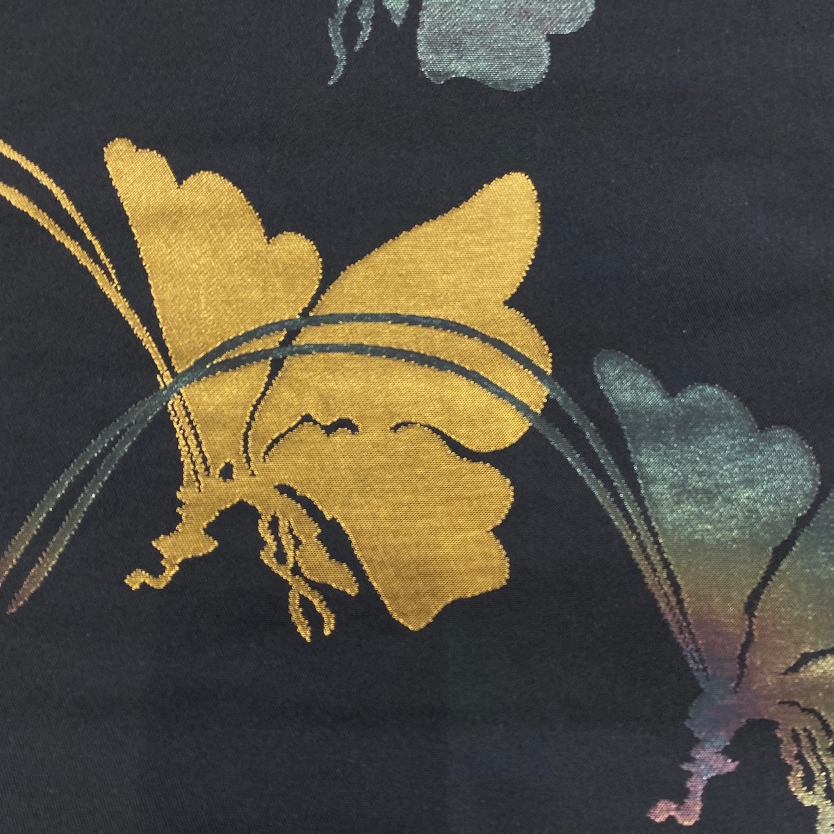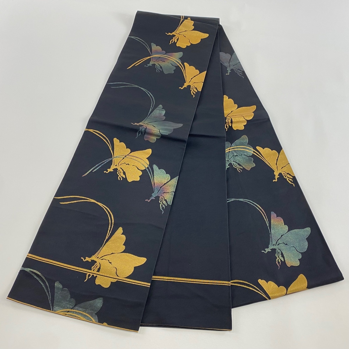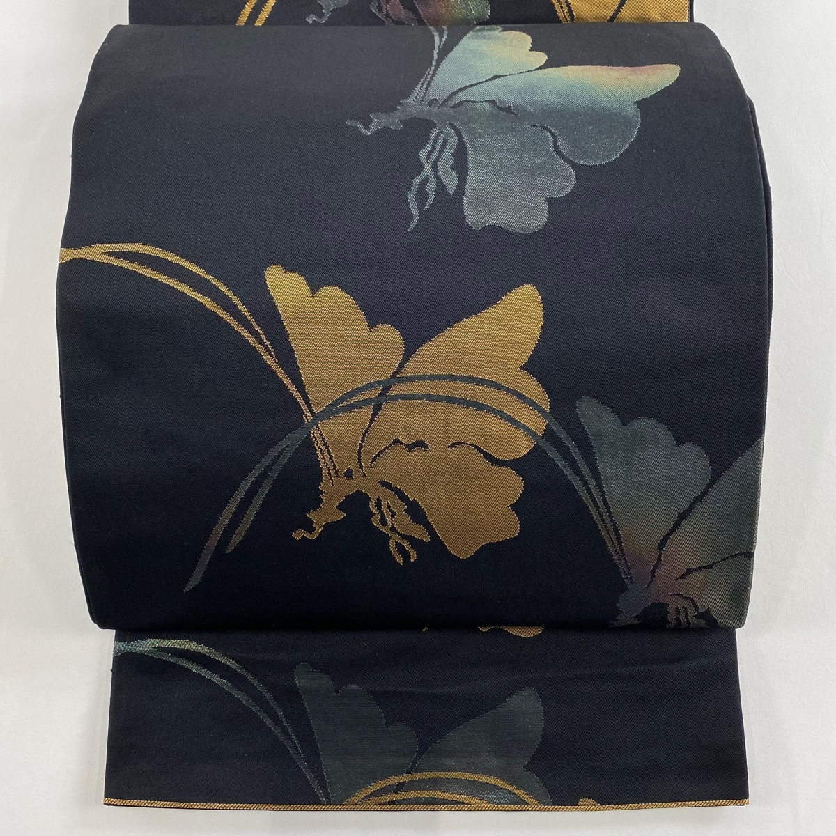 | 袋帯 美品 秀品 織悦 落款 振袖向き 関西仕立て 蝶 箔 黒 全通 正絹 【中古】 |