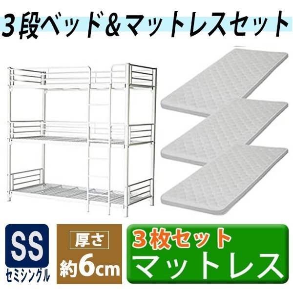 | 商品名 | 送料無料 3段ベッド 三段ベッド 快適マットレス付き 3枚 セミシングルベッドマットレス セミシングル マットレス 厚さ約6cm 圧縮 コンパクト ポリウレタンフォーム ウレタン セミシングルマット スチールベッド パイプベッド ベッド 寝具 ホワイト bed142005ss3p |