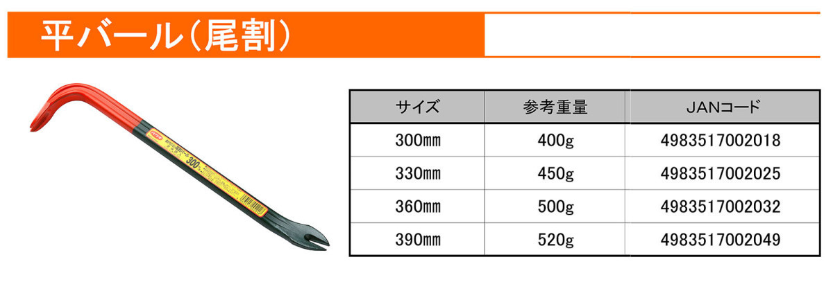〈バクマ〉 平バール(尾割) 390mm JAN:4983517002049