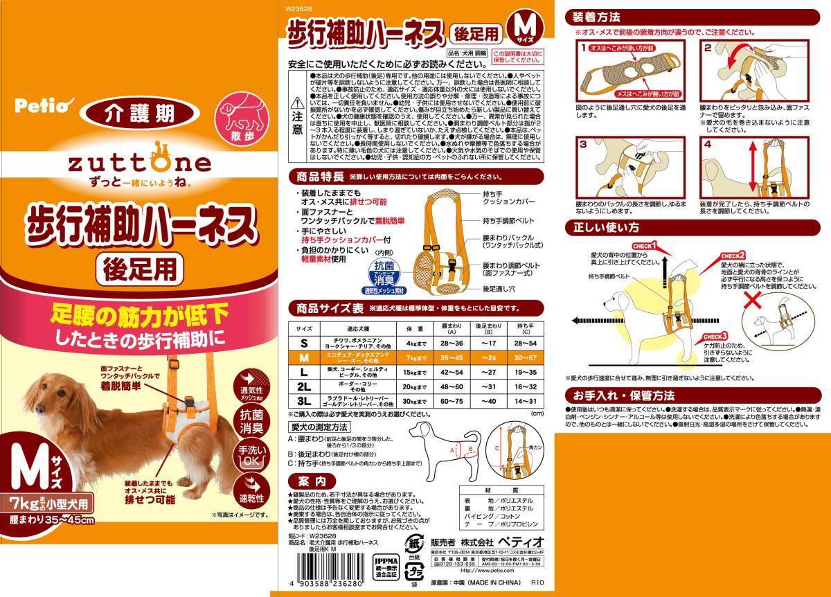 ペティオ (Petio) 老犬介護用 歩行補助ハーネス 後足用 小型犬用 M サイズ