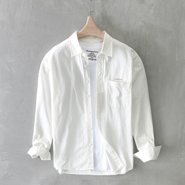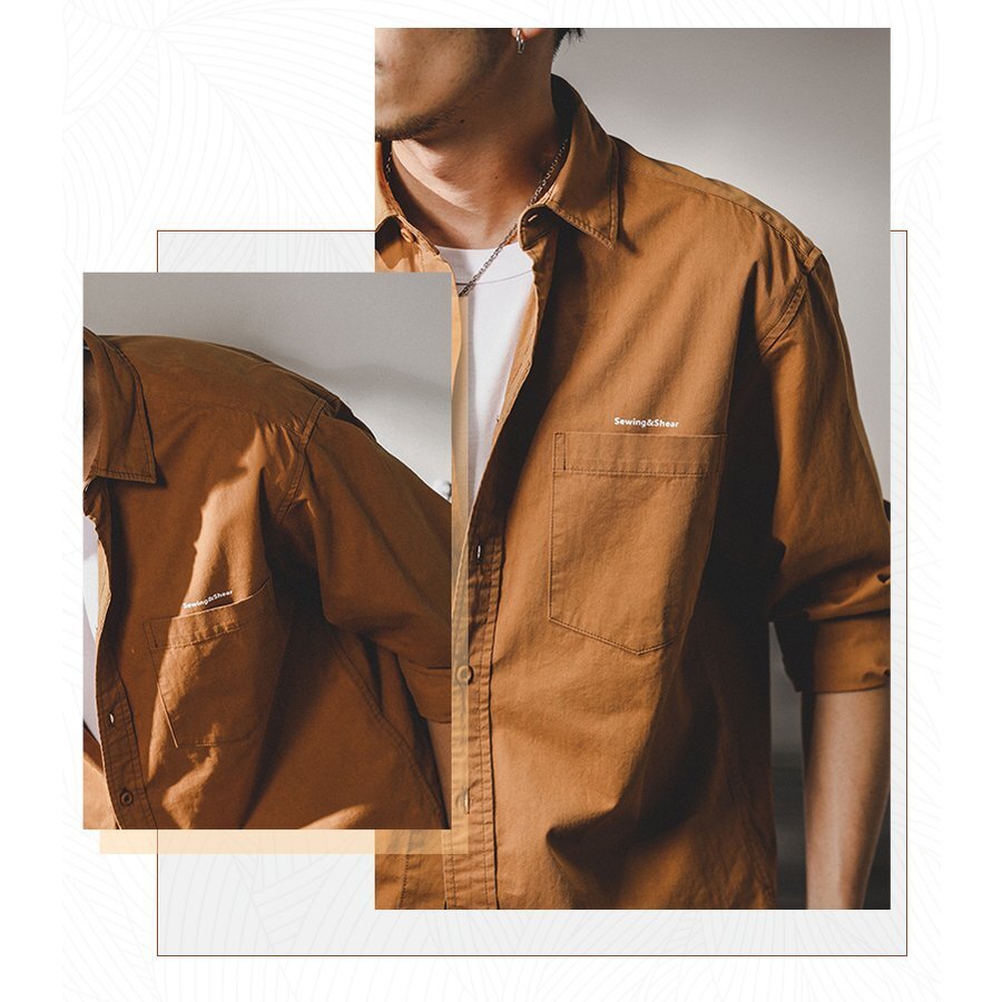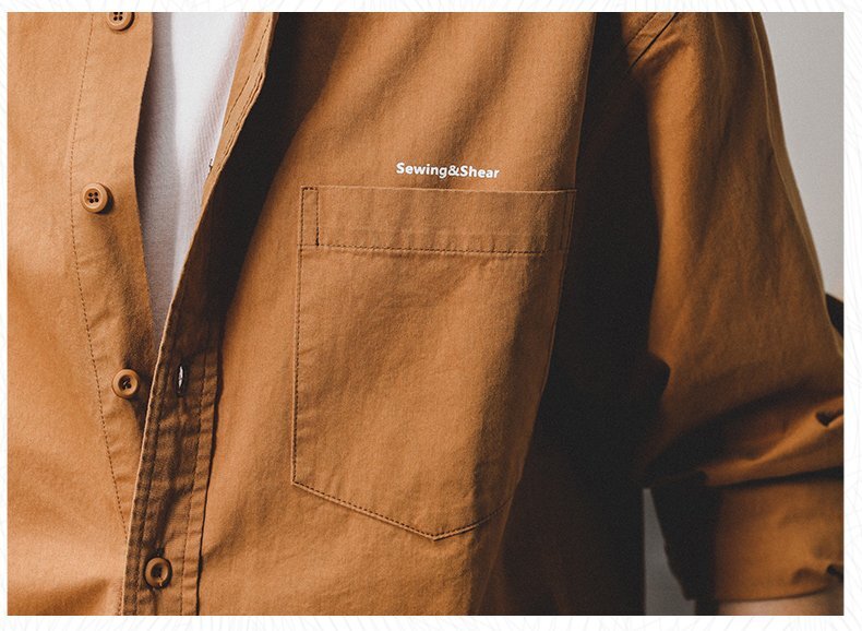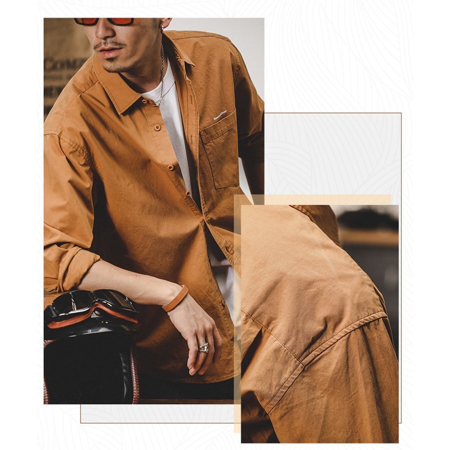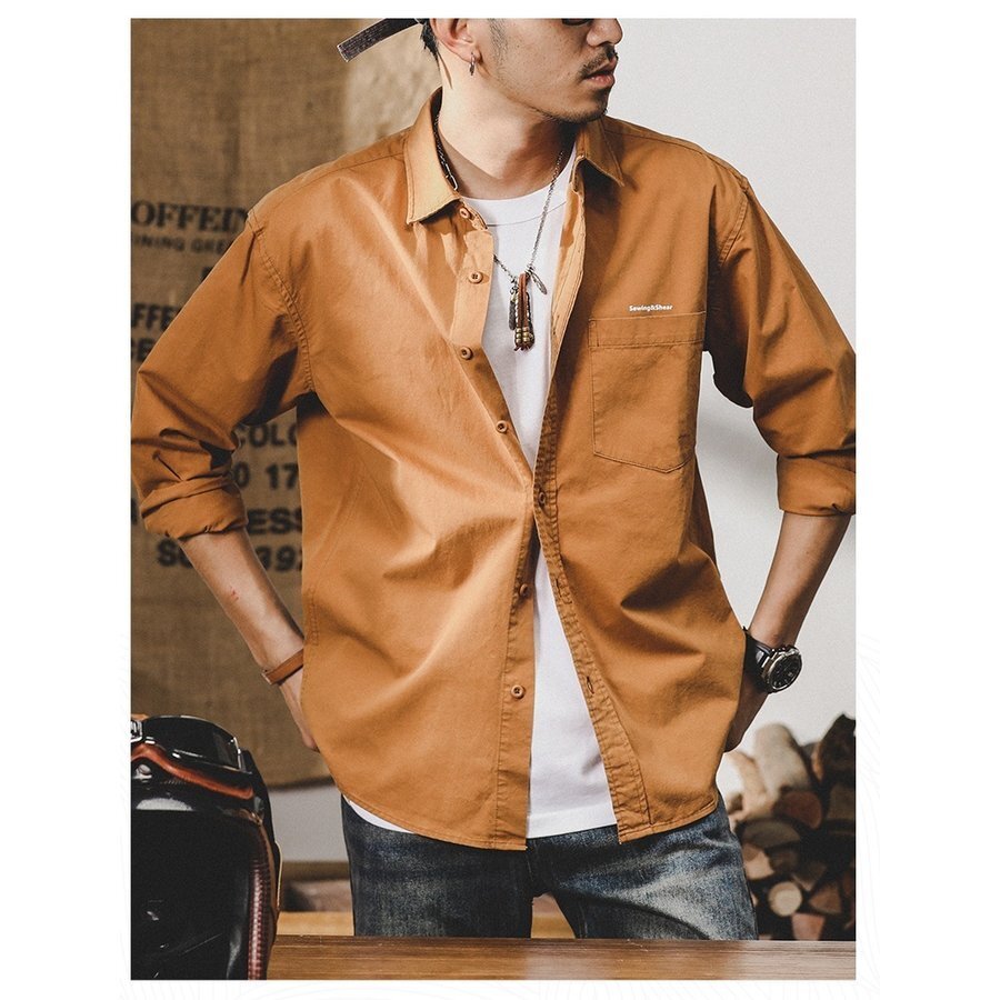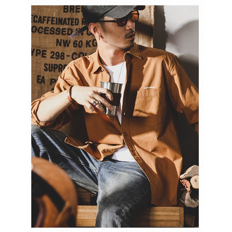 カジュアルシャツメンズ 長袖 ワークシャツ ミリタリー レトロ 英文字 無地 ポケット付き シャツジャケット 丈夫 ライトアウター 春 秋