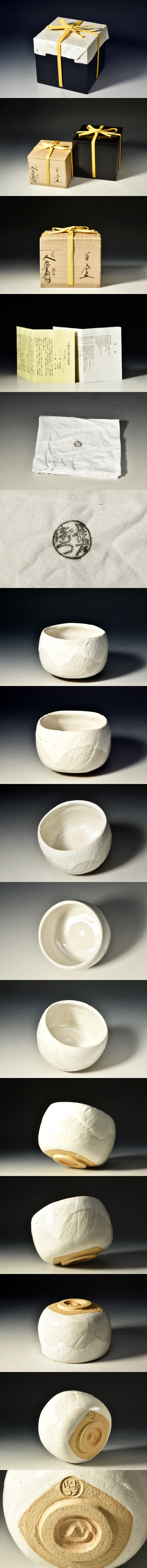 U08342 十代 大樋長左衛門 別作 白 茶碗 共箱 塗二重箱 /清 ■長