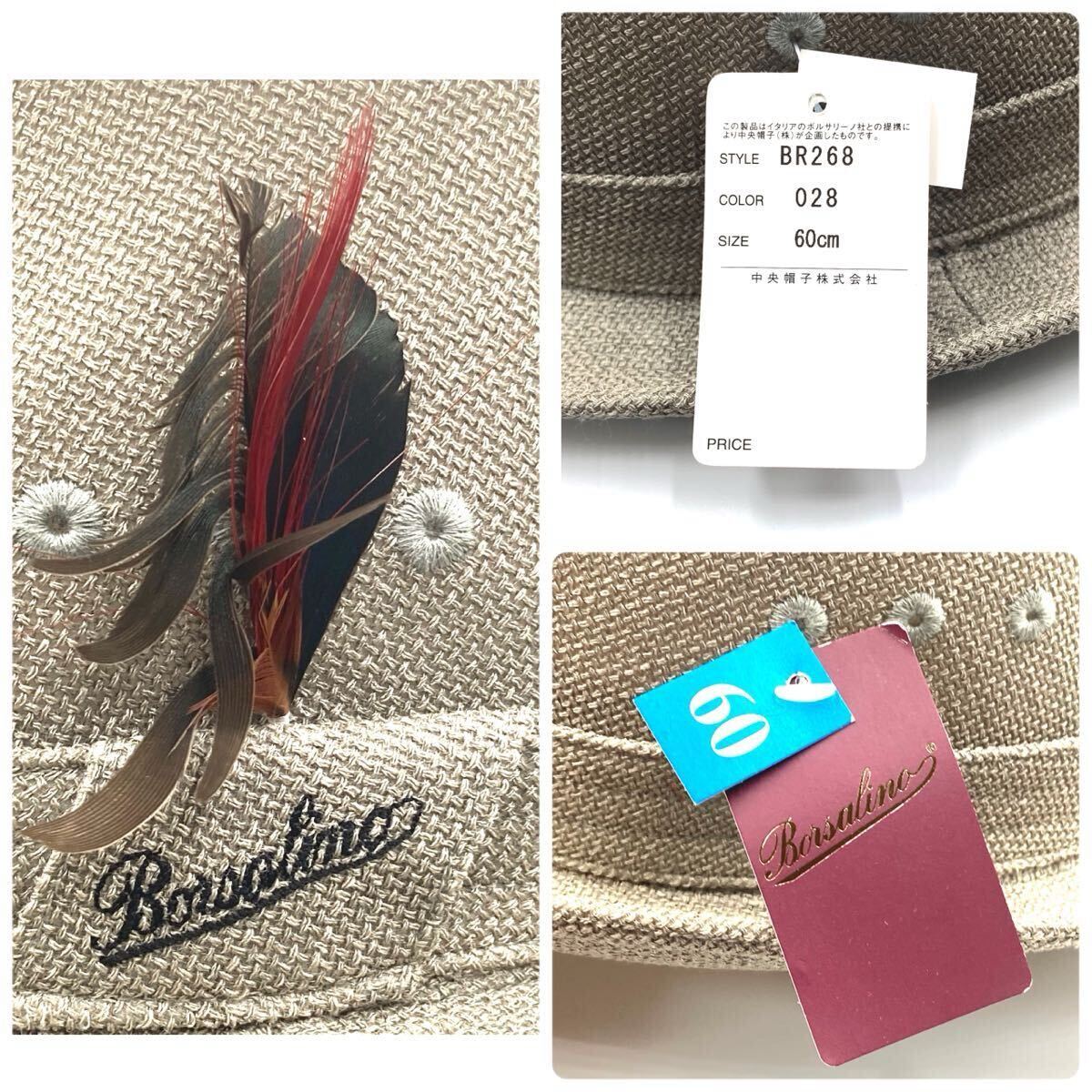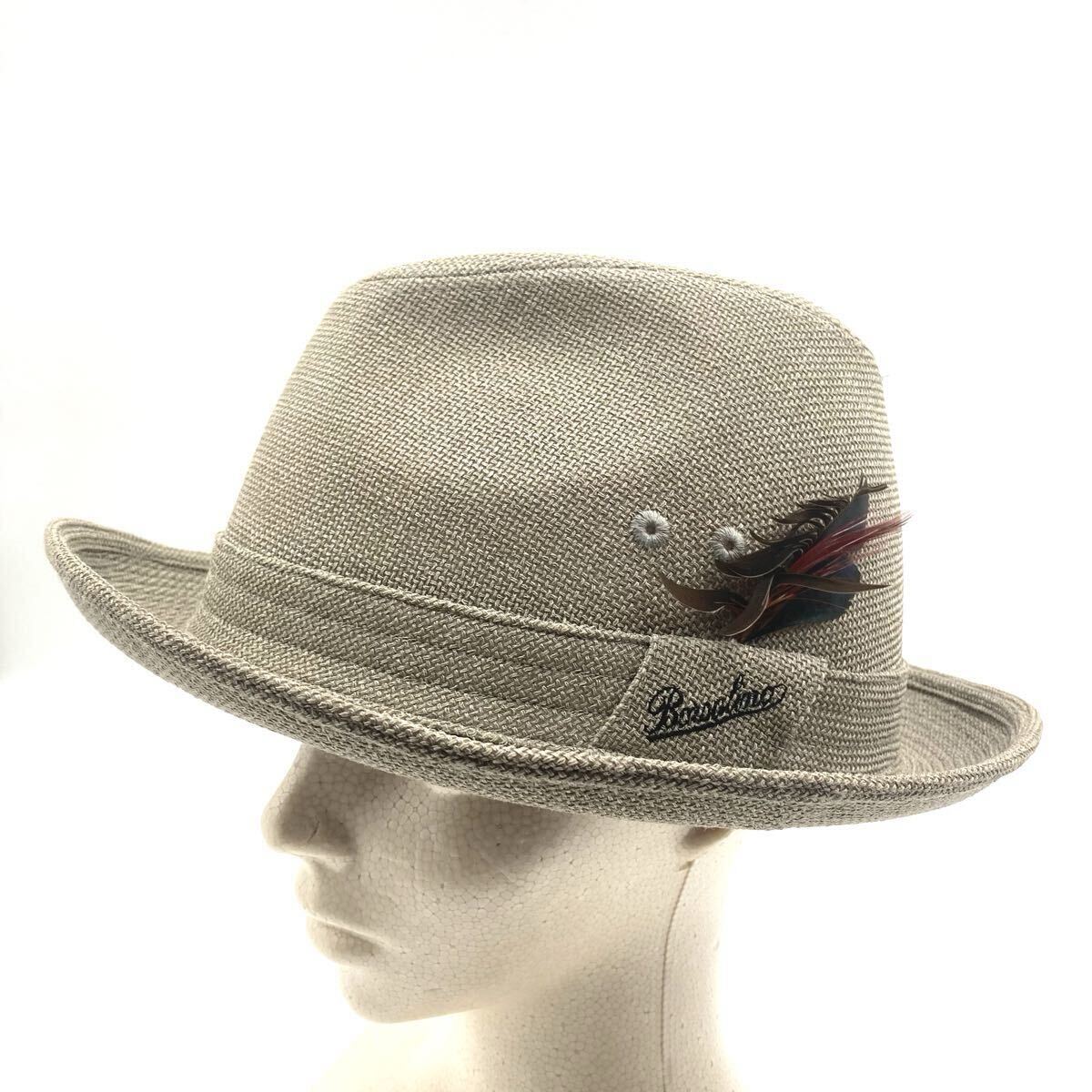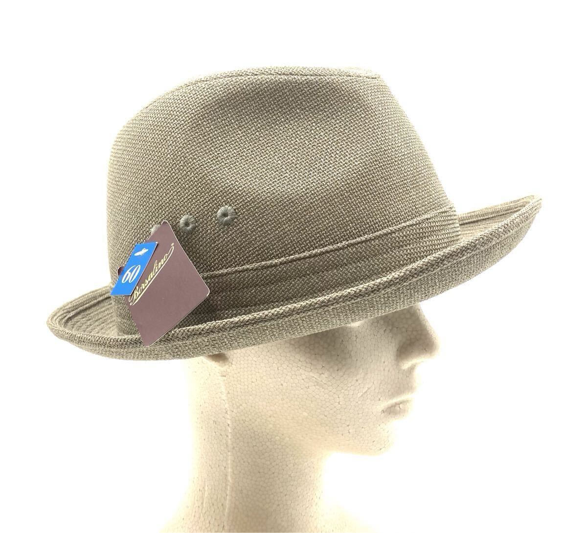 ■未使用タグ付き■BORSALINO ボルサリーノ  フェドラハット 羽根つき帽子 サイズ60cm 日本製 グレー メンズ