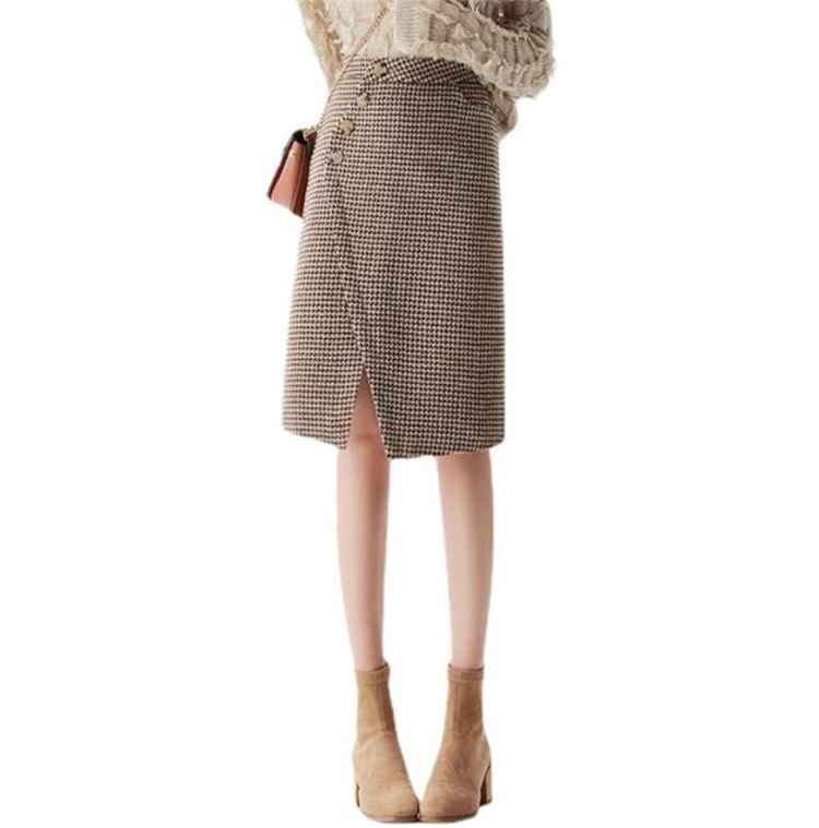 千鳥格子 タイトスカート ハイウエスト ミニスカート デザインセンス スプリット M ブラック