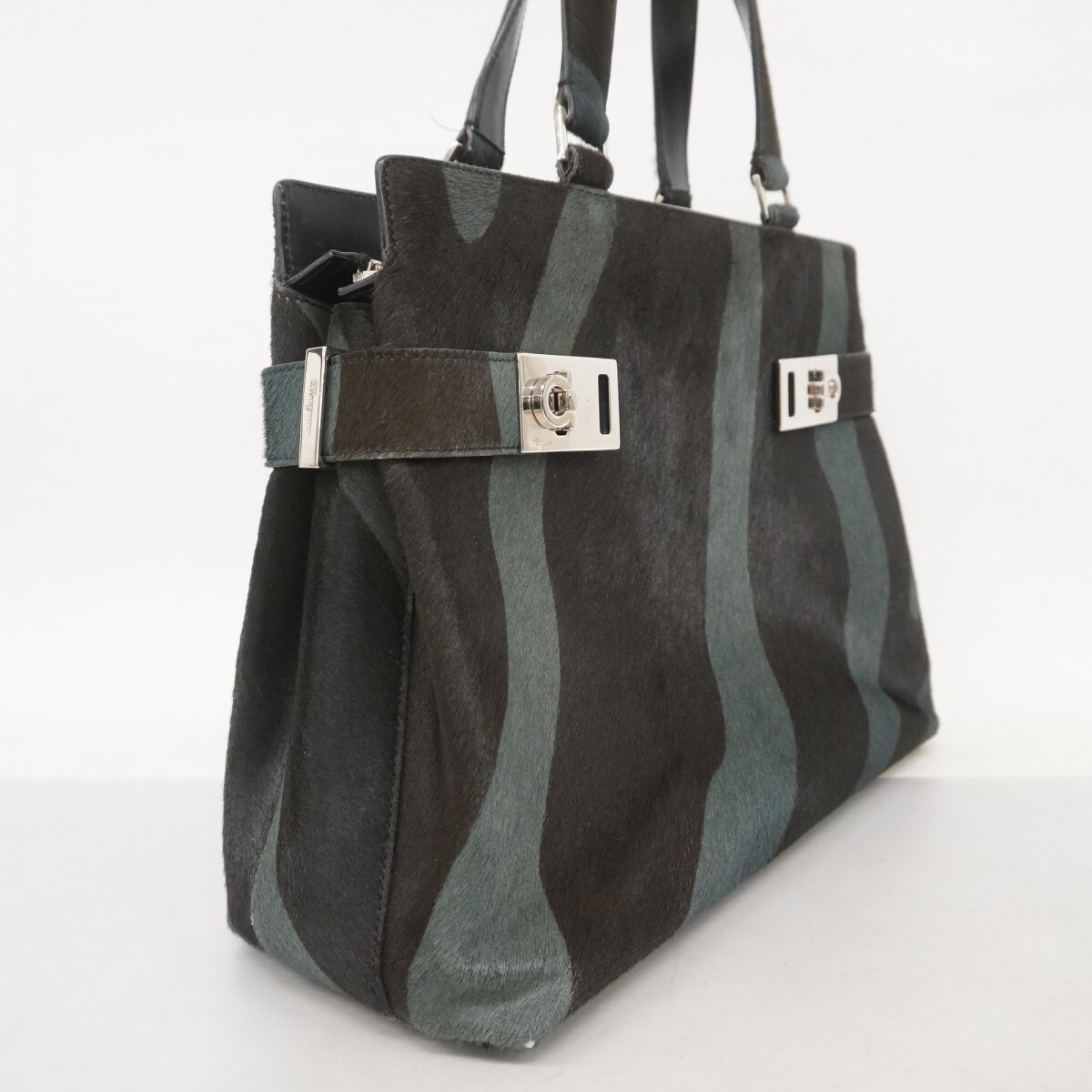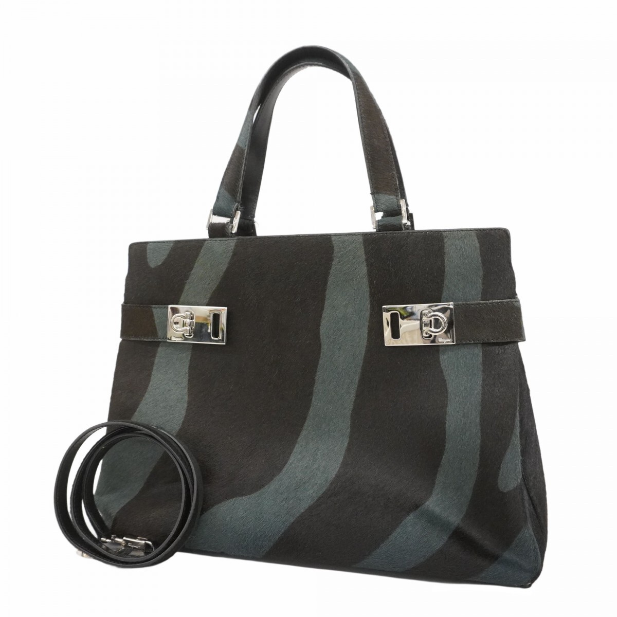★最終価格【5mc2880】サルヴァトーレフェラガモ ハンドバッグ ガンチーニ ハラコ ブラック シルバー金具【中古】レディース