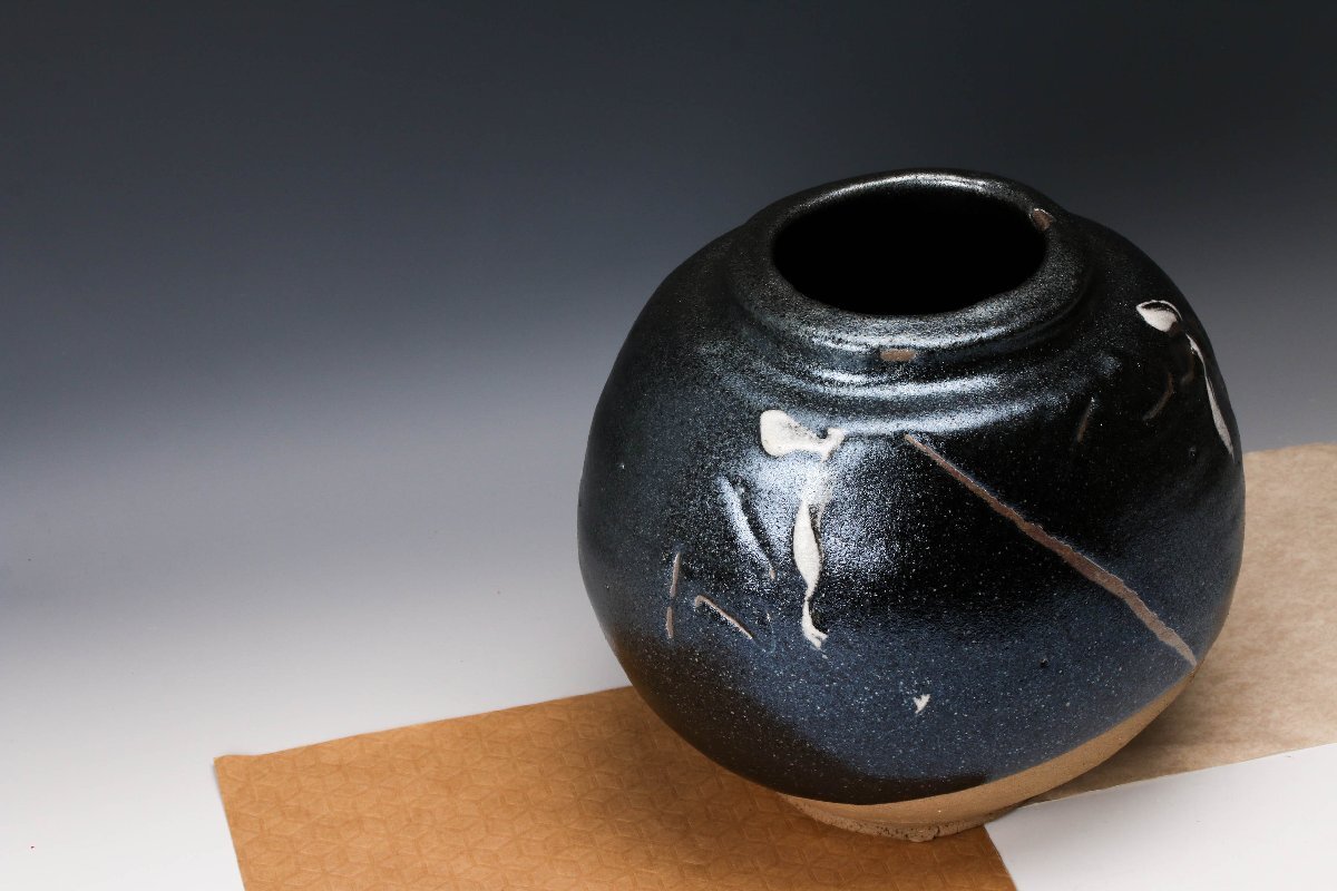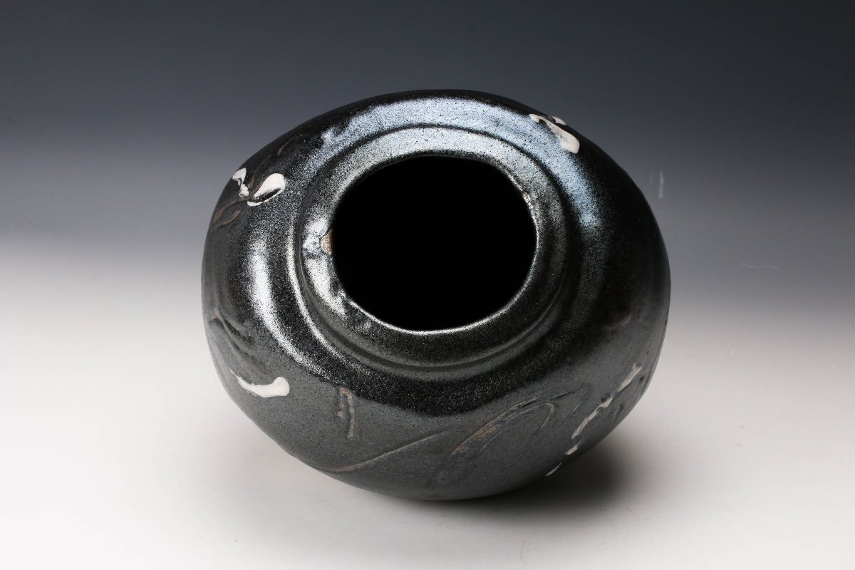 【佳香】人間国宝 清水卯一 鉄耀扁壷 共箱 二重箱 本物保証