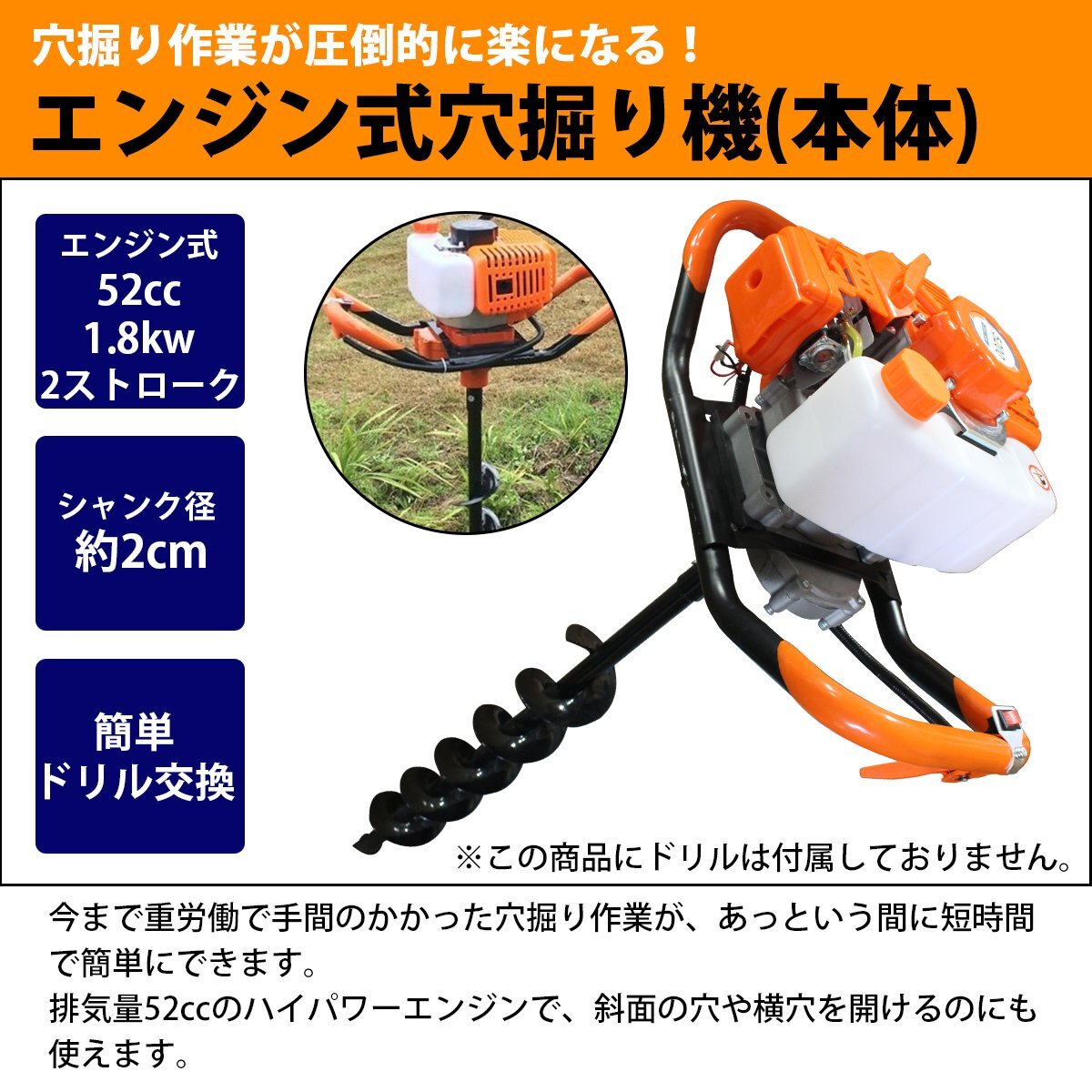 【送料無料】本体のみ(ドリルなし)アースオーガー エンジン オーガー 穴掘り機 52cc 土 ドリル ガーデニング 2スト 2サイクル 穴 掘り