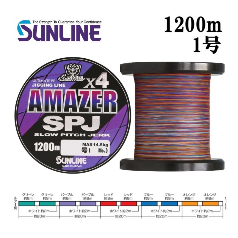 サンライン アメイザー×4 SPJ スローピッチジャーク専用 ソルティメイト 1号 21lb 1200m巻 5色分 国産 日本製 ULT-PEライン x4