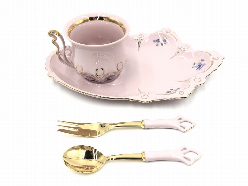 スプーン・フォーク・カップ・ソーサー兼プレートのセットです。